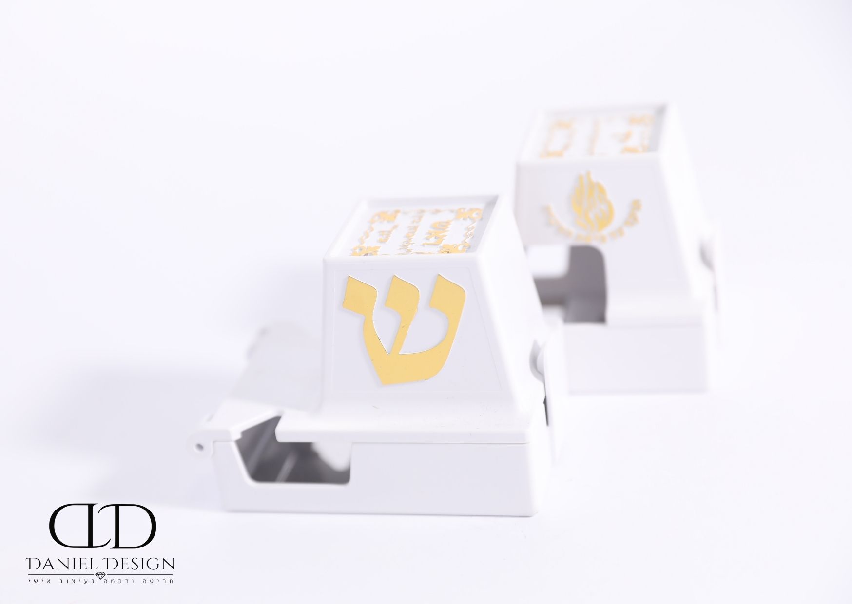 בית תפילין אוניברסלי דגם האש שלי צבע לבן זהב