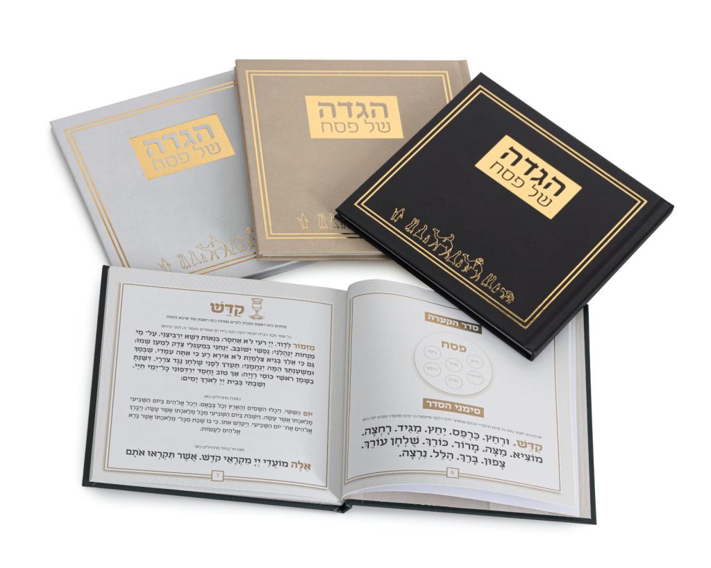 הגדה לפסח מהודרת , כריכה קשה ואיכותית גודל 15*15 ניתן להטביע שם לבחירת הלקוח (בהזמנת כמות קיימת אפשרות לגלופה בתוספת של 150 ש"ח)