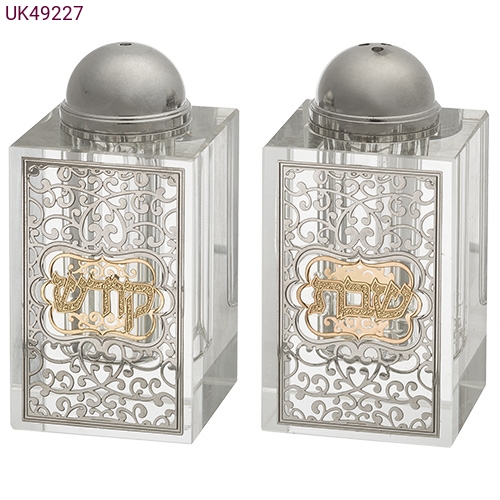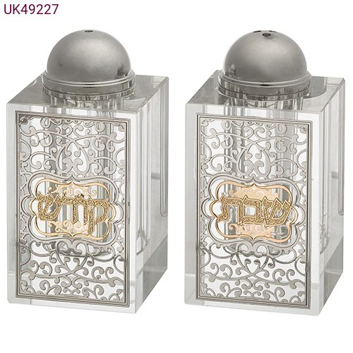 זוג מלחיות דגם פלקטה תחרה משולב זהב וכסף שבת קודש