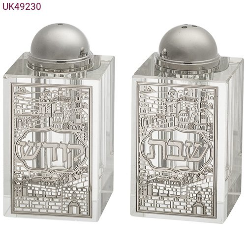 זוג מלחיות דגם פלקטה תחרה צבע כסף שבת קודש