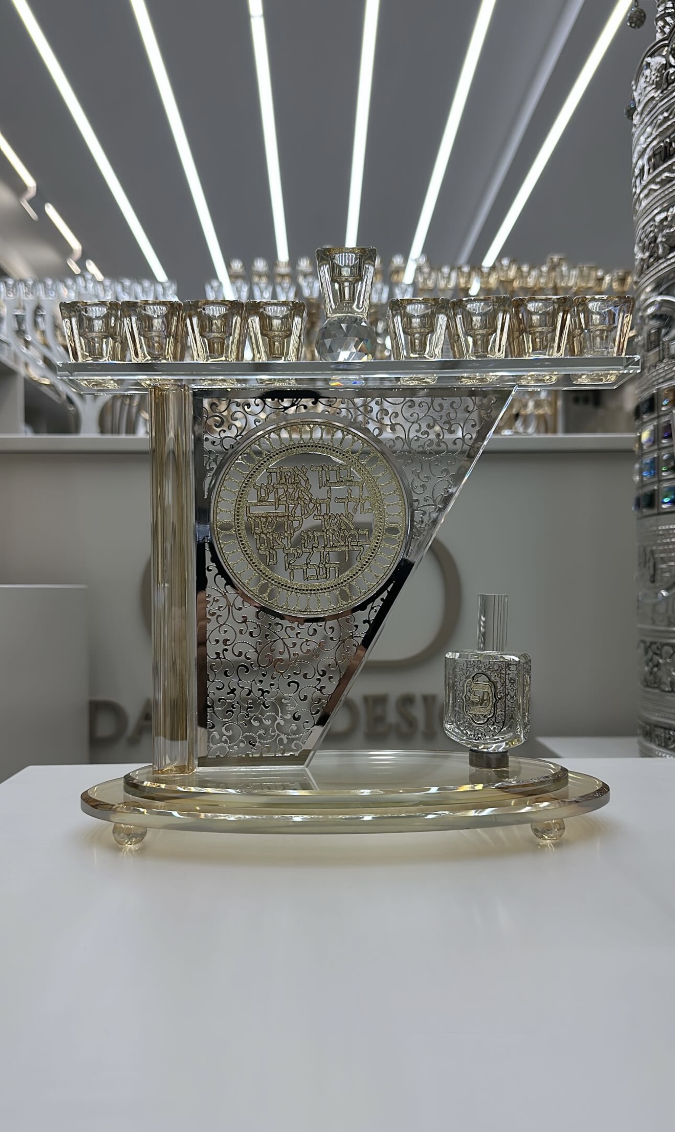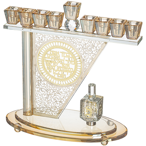 חנוכייה דגם לוח פלקטה וקריסטל עם סביבון צבע זהב