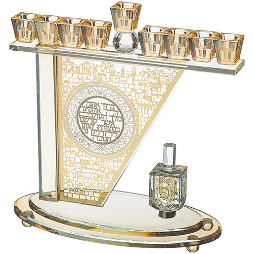 חנוכייה דגם לוח פלקטה כותל וקריסטל עם סביבון צבע זהב