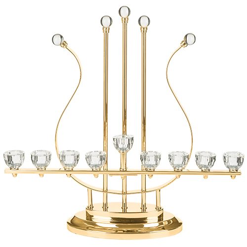 חנוכייה דגם נבל זכוכית עם ראשי קריסטל בצבע זהב גדולה