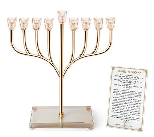 חנוכייה דגם שורשים מתכת ראשי קריסטל צבע זהב