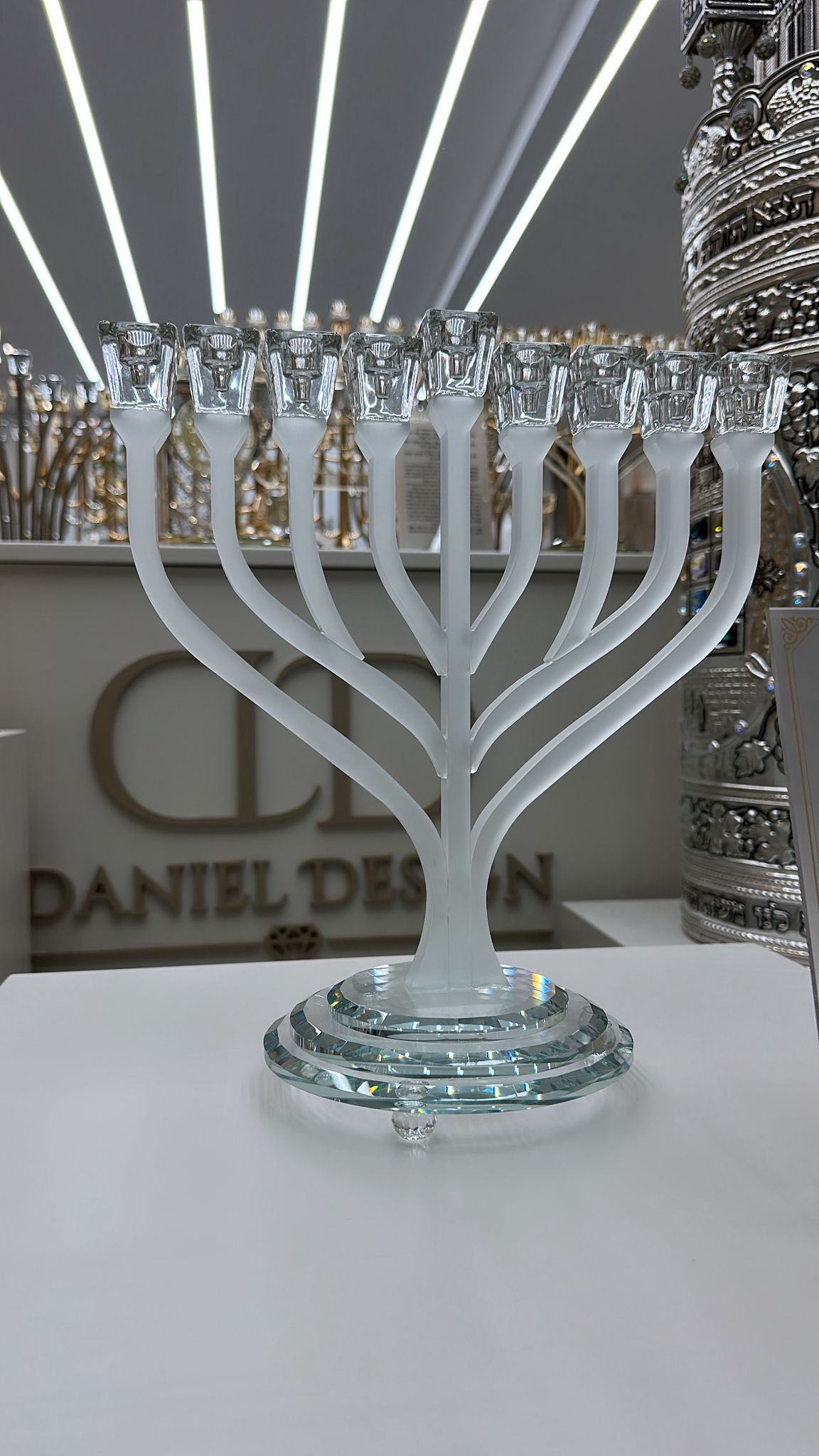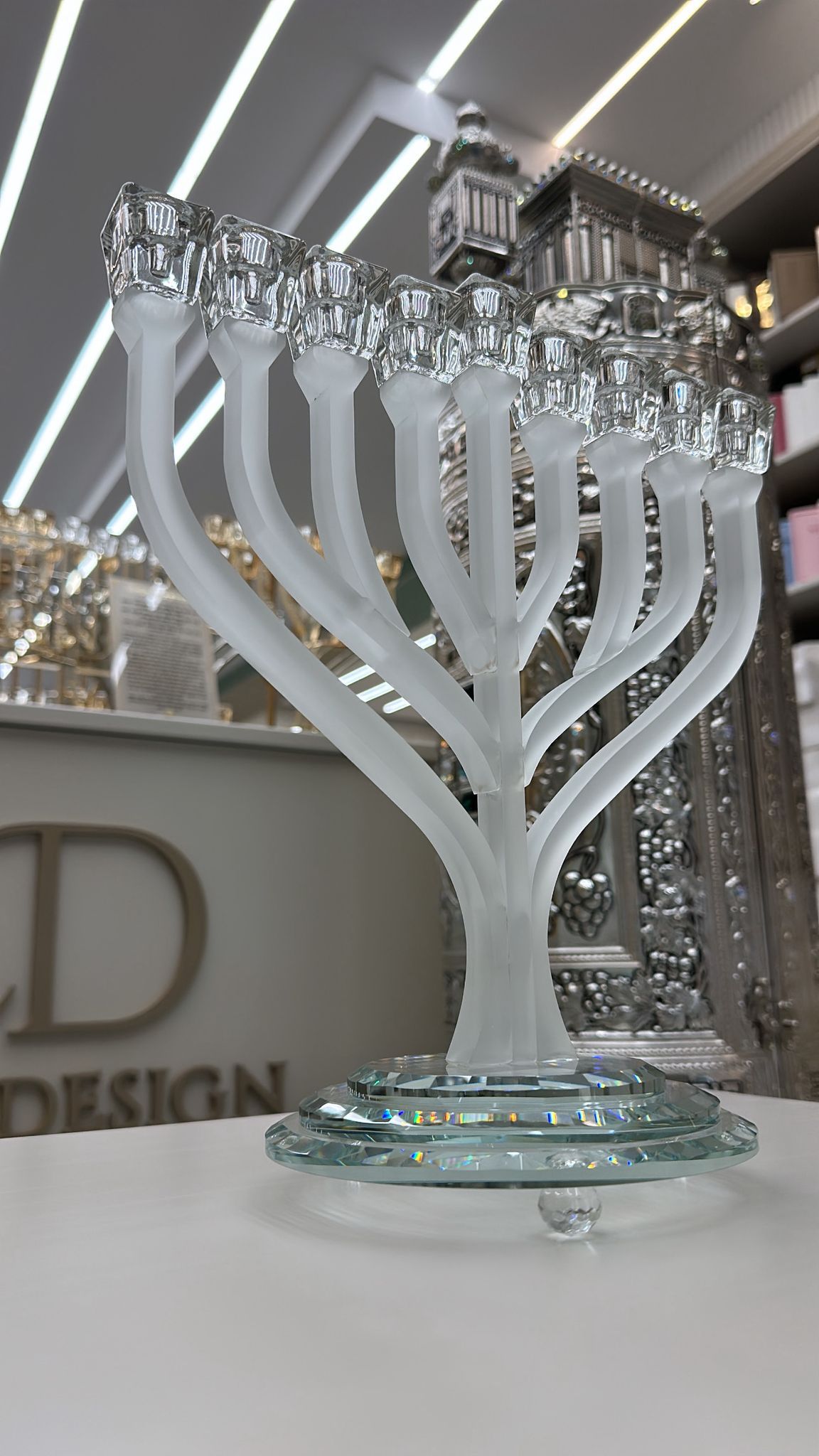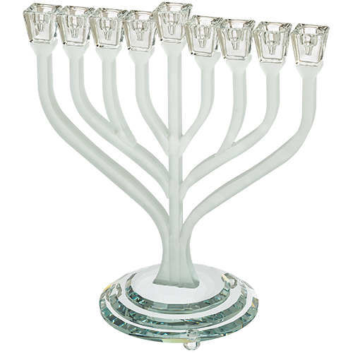 חנוכייה דגם שורשים ראשי קריסטל צבע חלבי