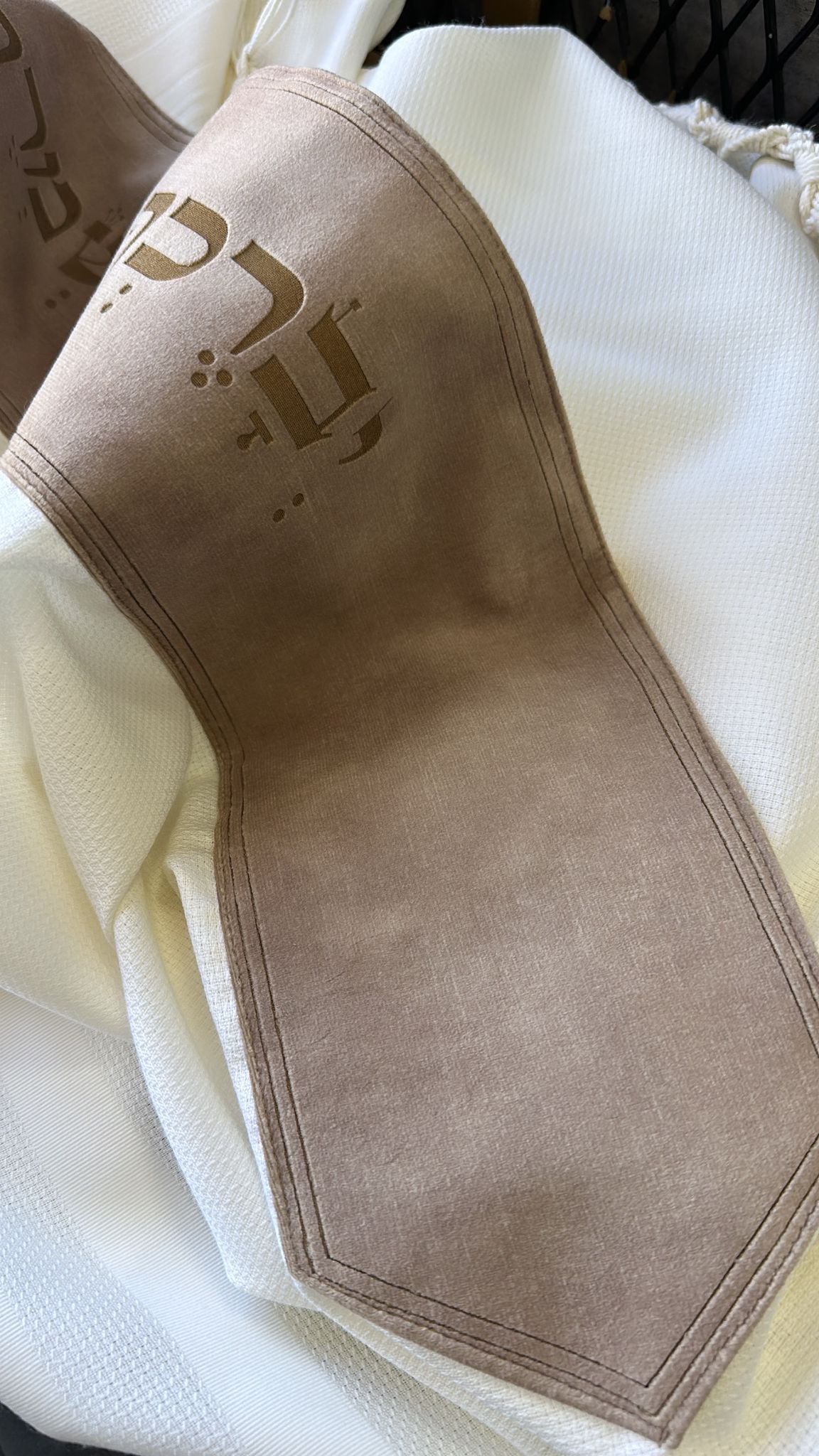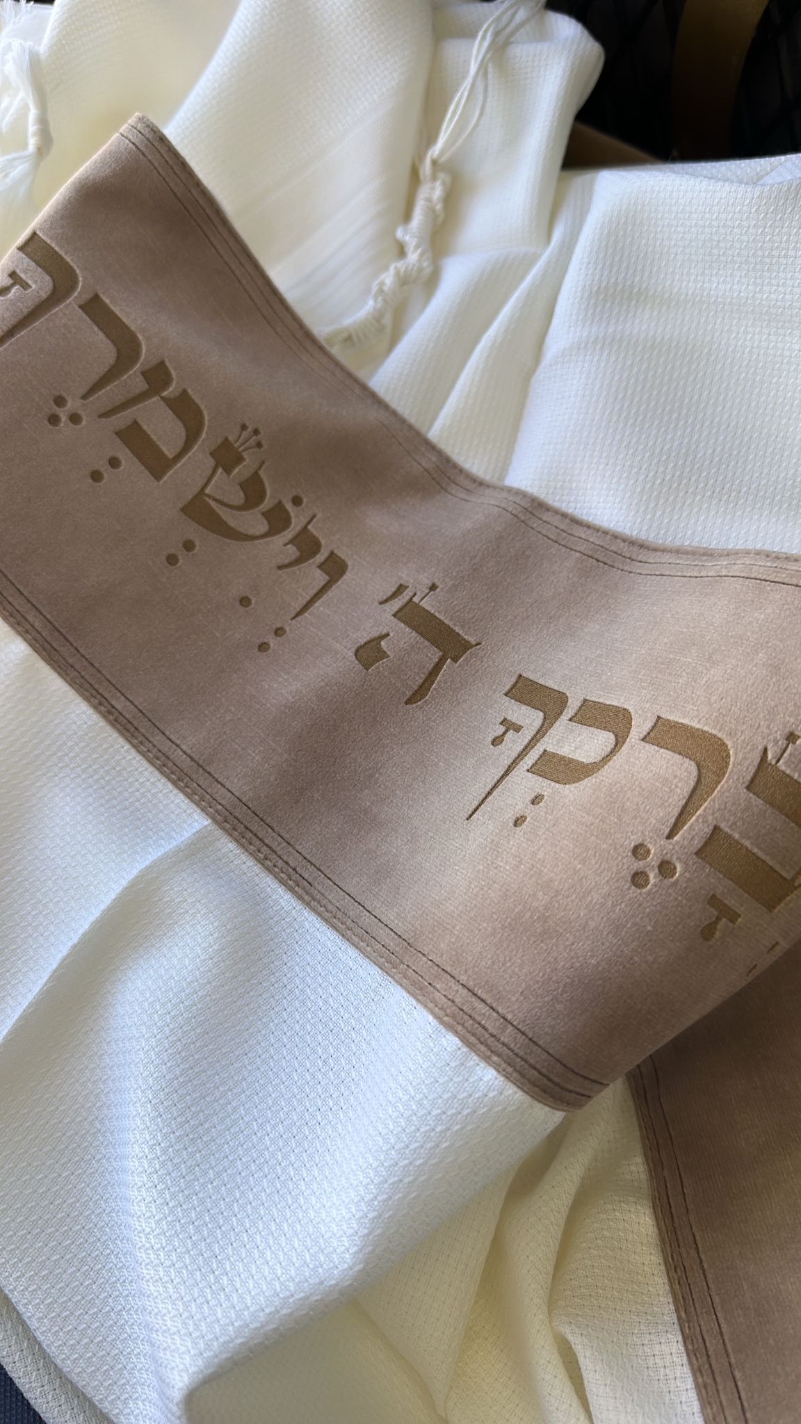 טלית Premium – דגם בית יוסף עם עטרה דגם איטליה יברכך צבע מוקה