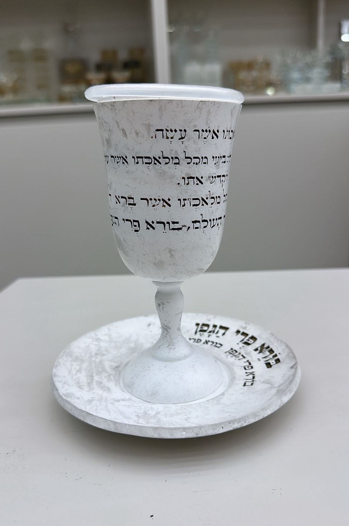 כוס קידוש פולימר דגם ברכה רגל גבוהה