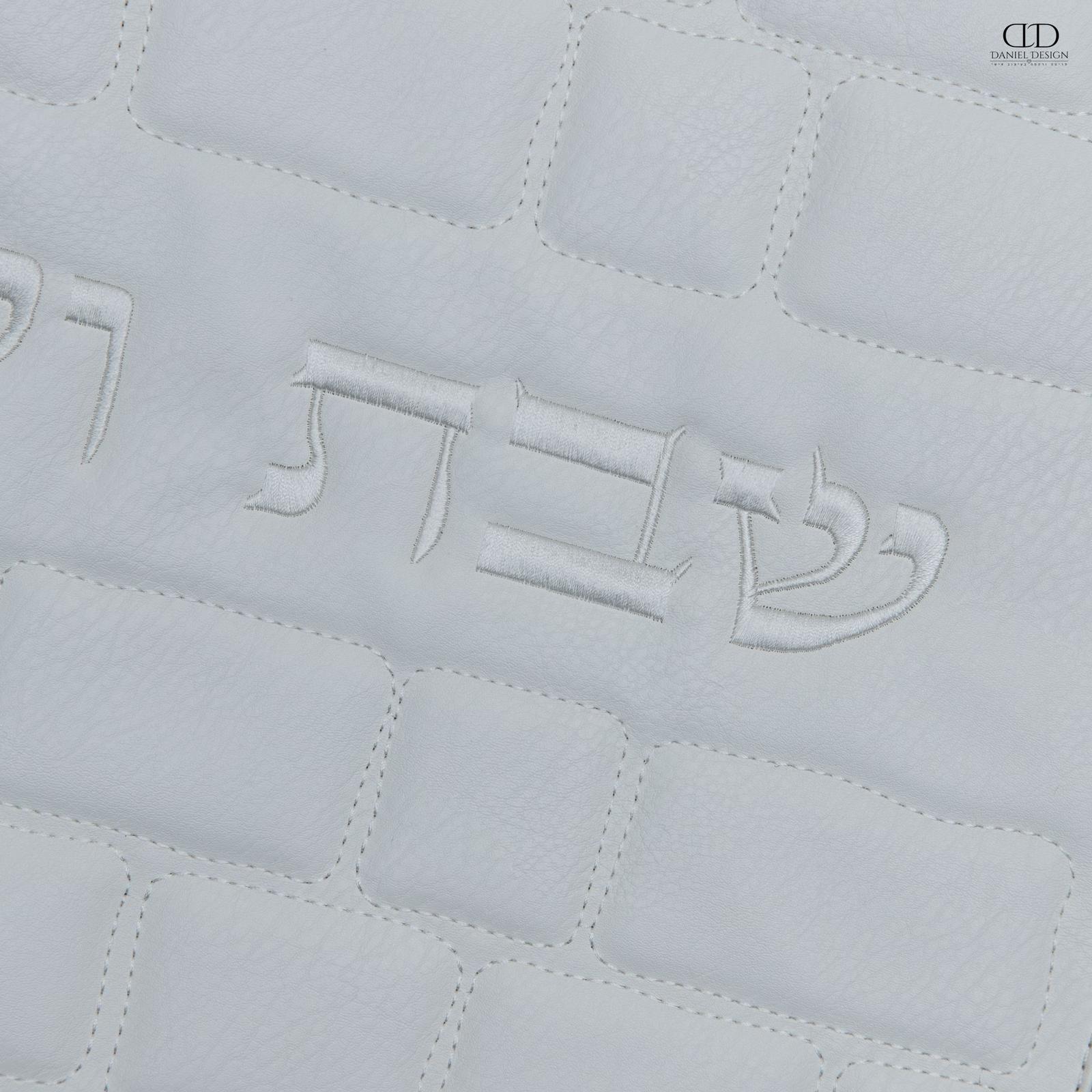 כיסוי חלה דמוי עור דגם כותל לבן אותיות בולטות צבע כסף שבת