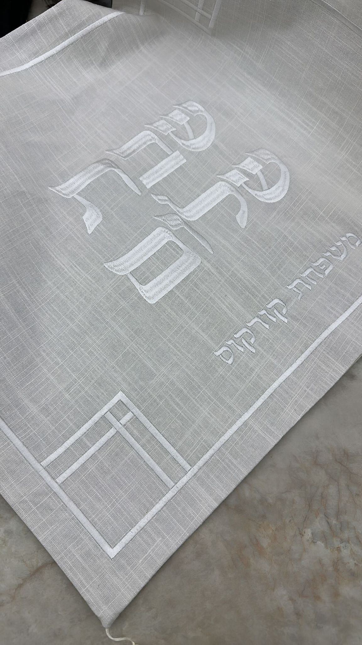 כיסוי חלה פשתן דגם Daniel עם כיתוב שבת שלום ניתן להוסיף שם בעברית / אנגלית לבחירת הלקוח