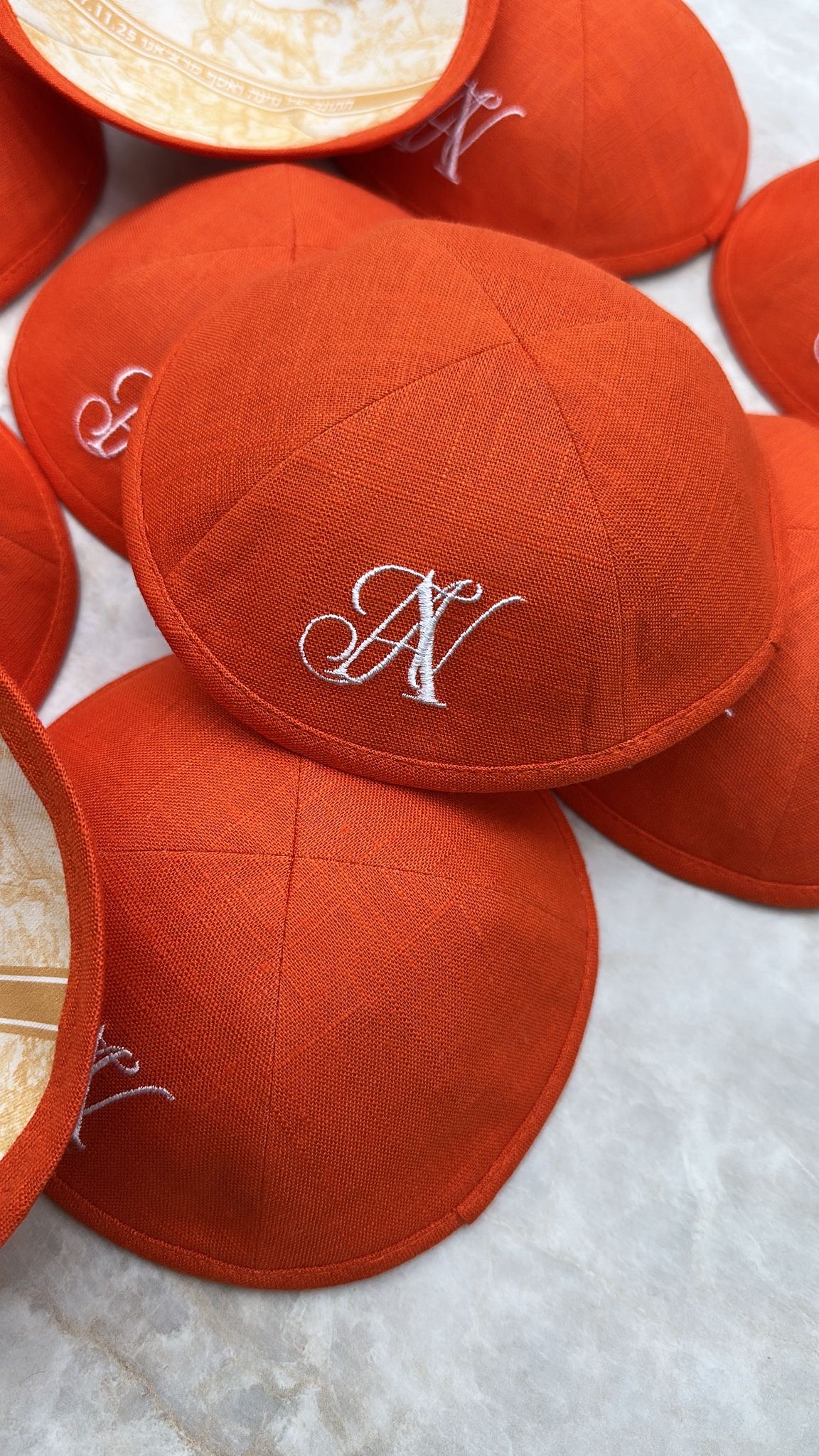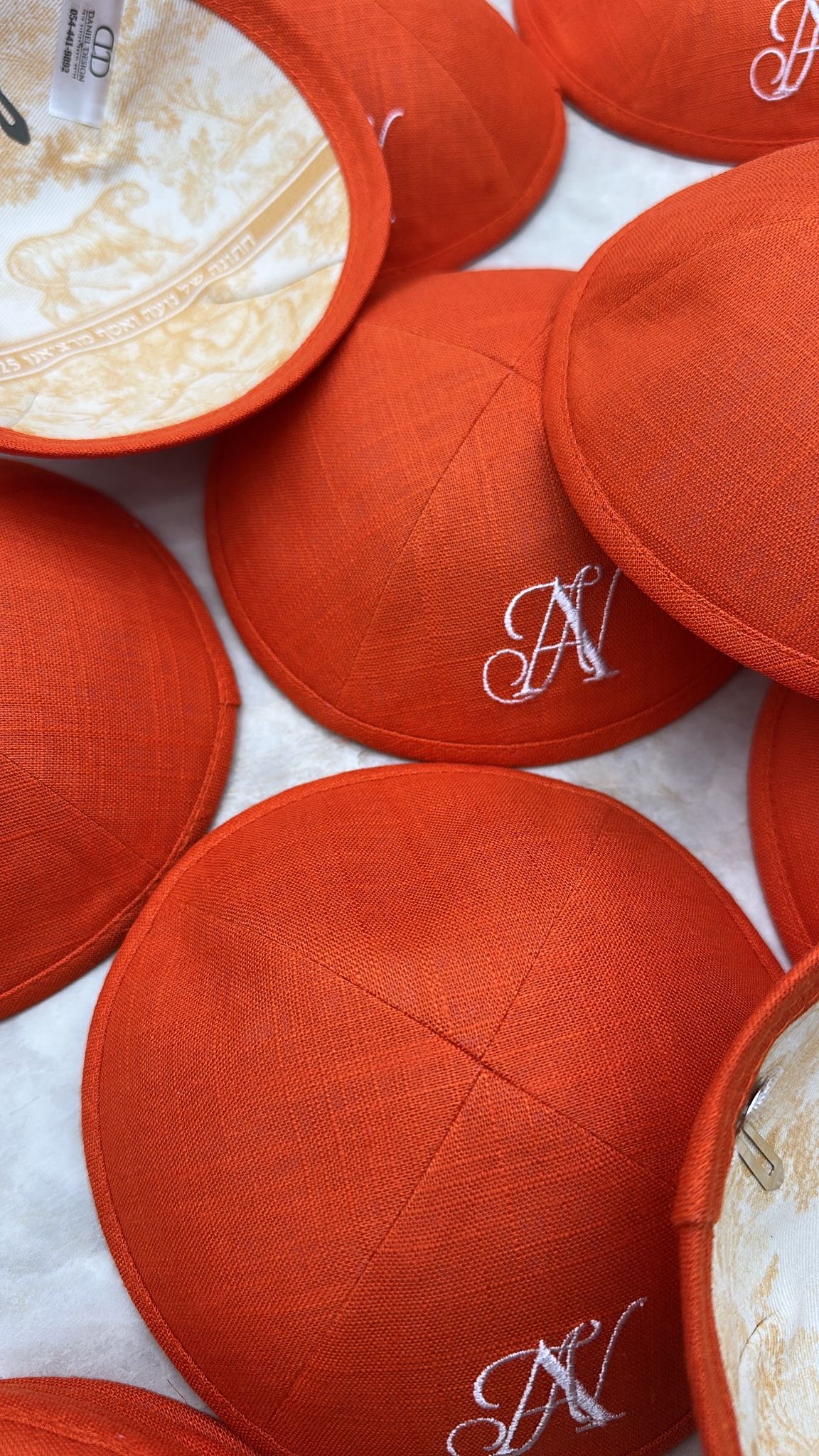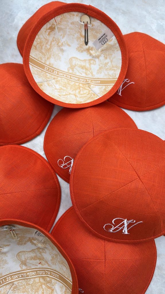 כיפה מעוצבת דגם דיור רקמה והדפסה פנימית צבע כתום