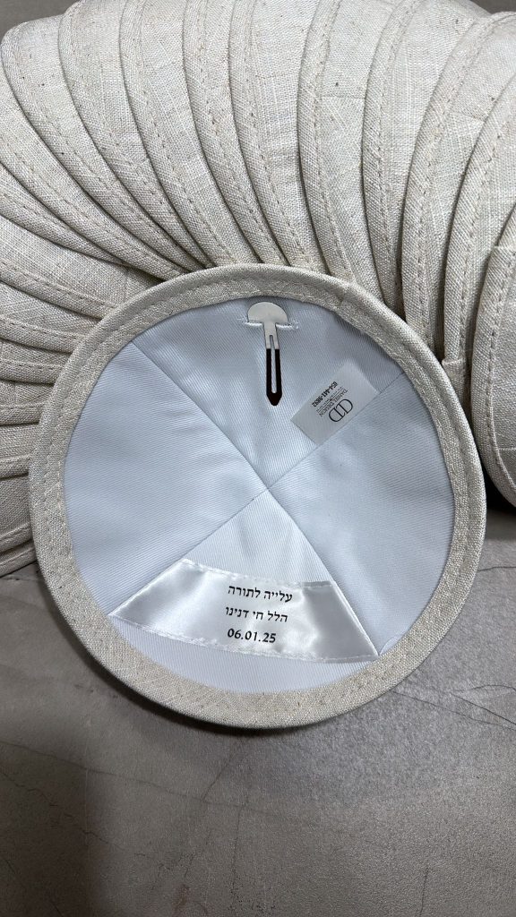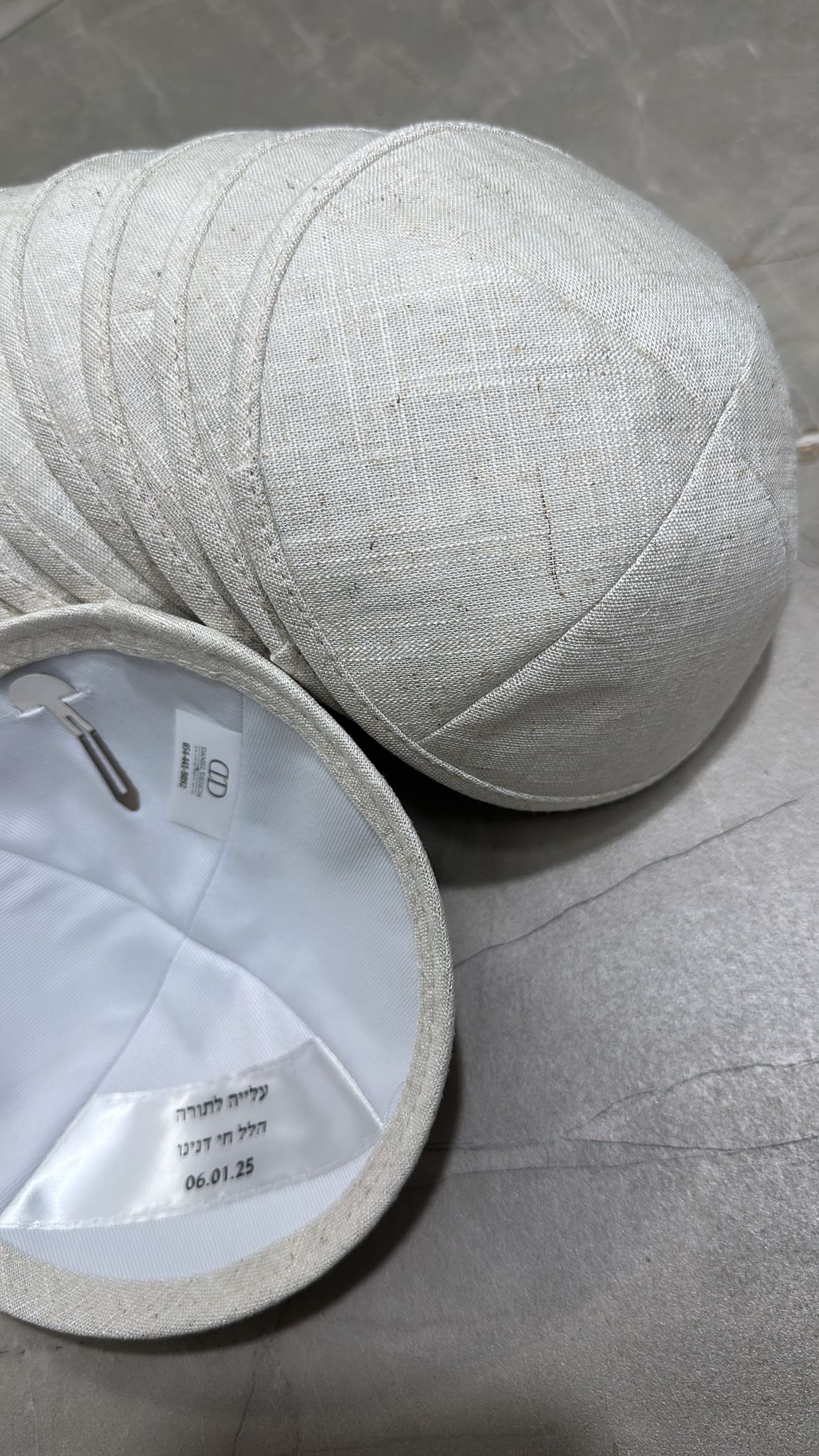 כיפה מבד פשתן מגיעה עם סיכת ראש