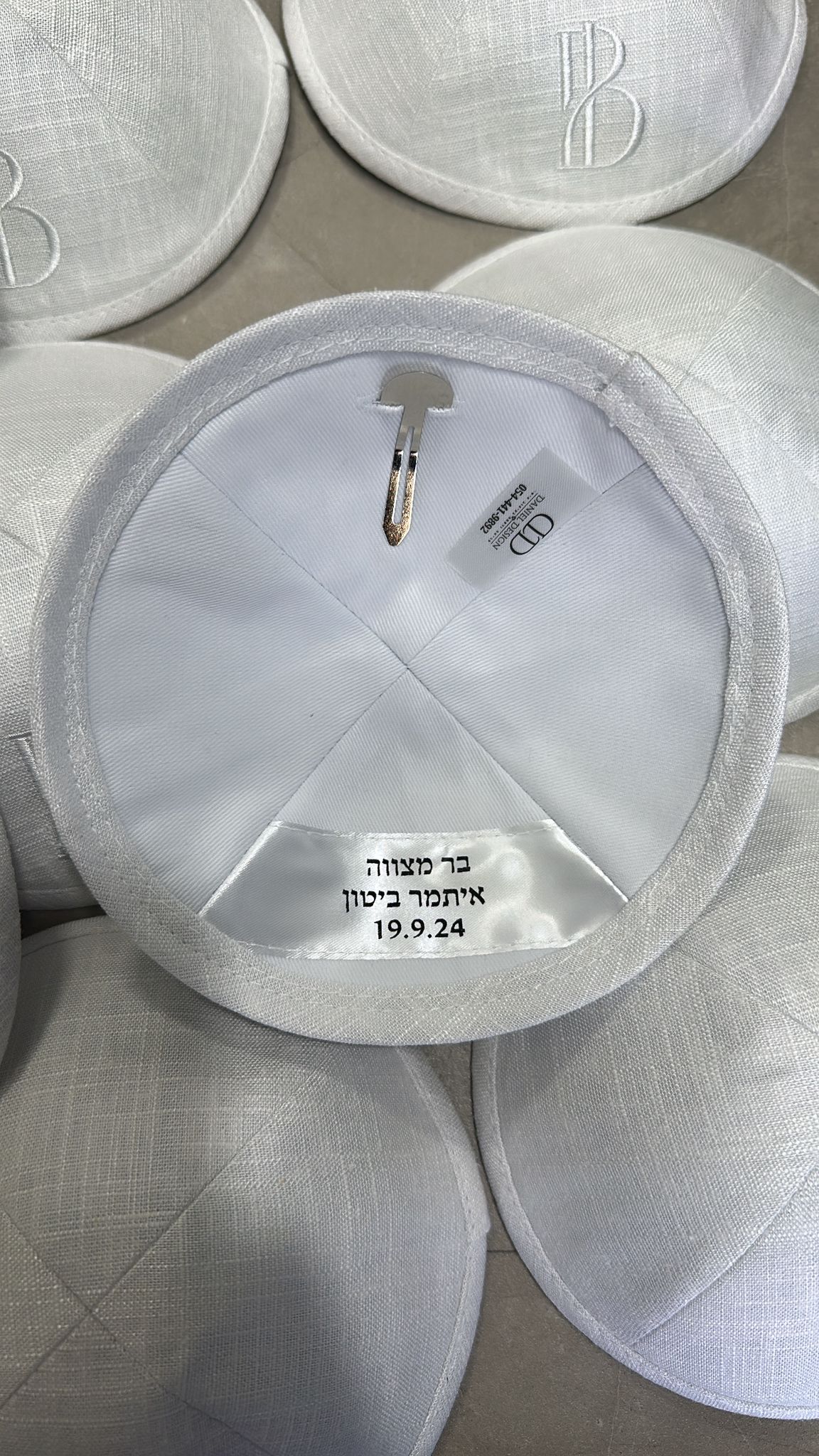 כיפה מעוצבת עם רקמה חיצונית והדפסה פנימית כיפה מבד פשתן מגיעה עם סיכת ראש מינימום להזמנה – 30 יחידות (ניתן לשלב צבעים) הדמיה תישלח לאישור לאחר ביצוע הזמנה  הזמנה שבועיים מראש!  לדוגמאות נוספות ועיצוב אישי ניתן לפנות אלינו דרך כפתור Whatsapp