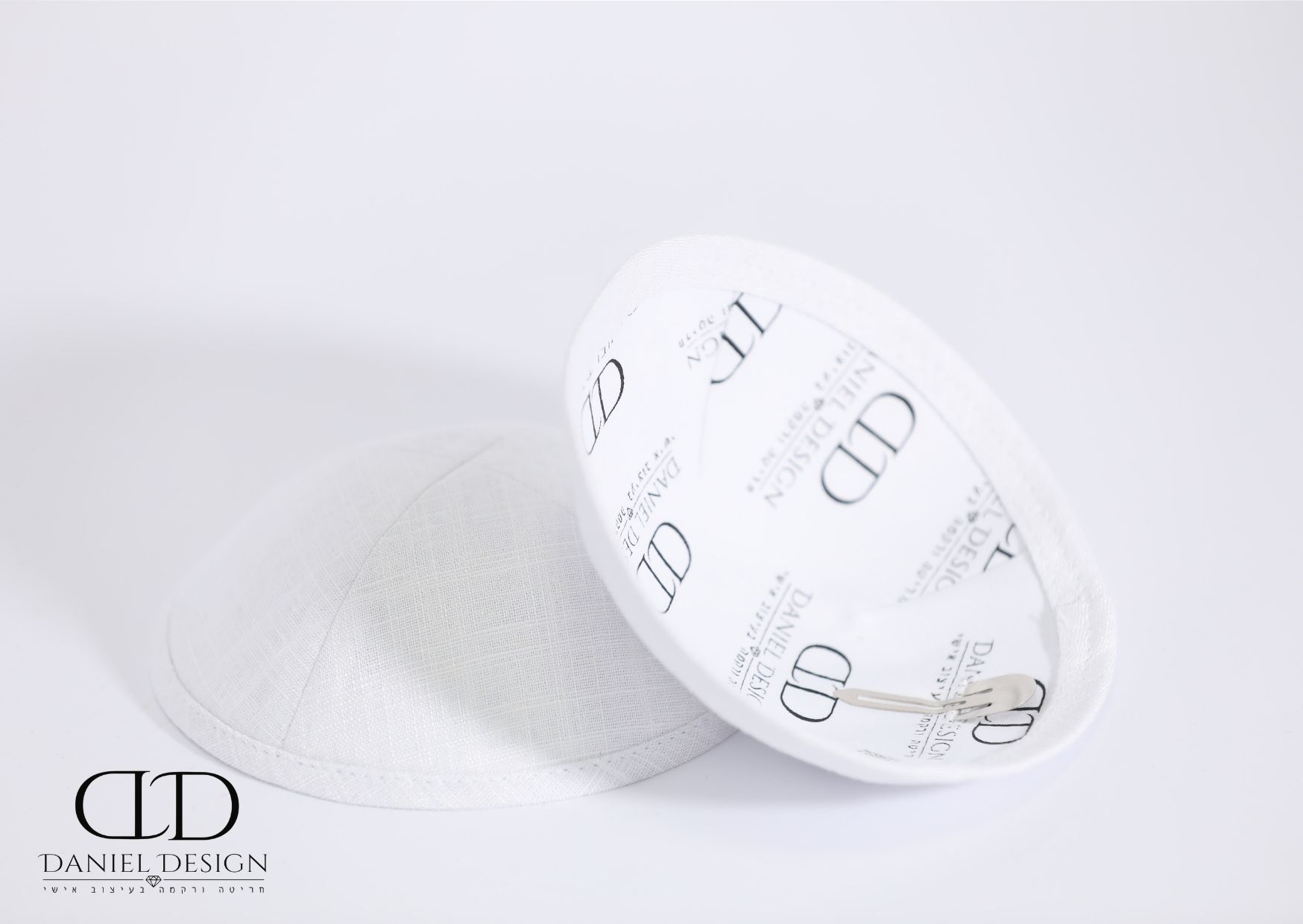 כיפה 100% בד פשתן יוקרתי, תוצרת הארץ בתוספת סיכת ראש פנימית ניתן להטביע שם בעברית / אנגלית לבחירת הלקוח