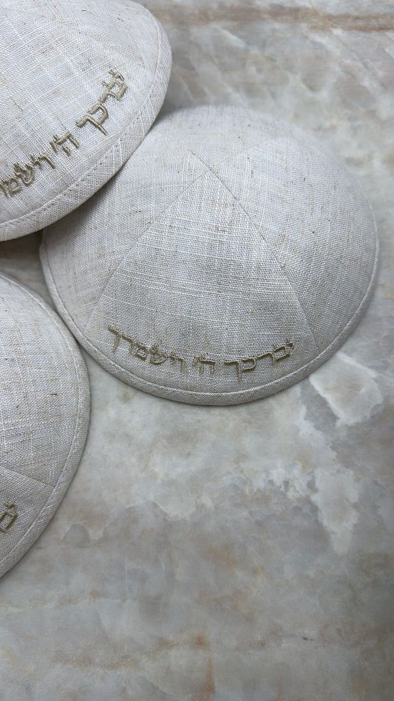 כיפת פשתן דגם יברך ה׳ וישמרך צבע פשתן טבעי