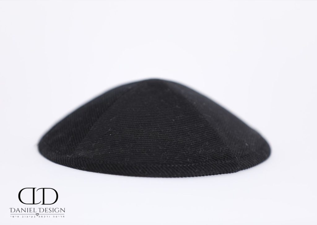 כיפה עשויה מבד קורדרוי , תוצרת הארץ בתוספת סיכת ראש פנימית ניתן להטביע שם בעברית / אנגלית לבחירת הלקוח
