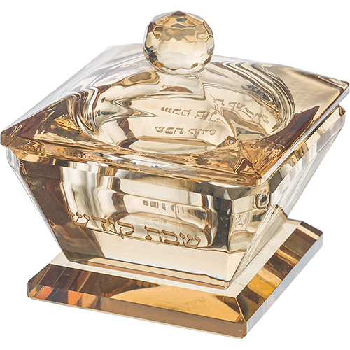 מלחיה מרובעת זכוכית עם מכסה דגם שבת קודש זהב