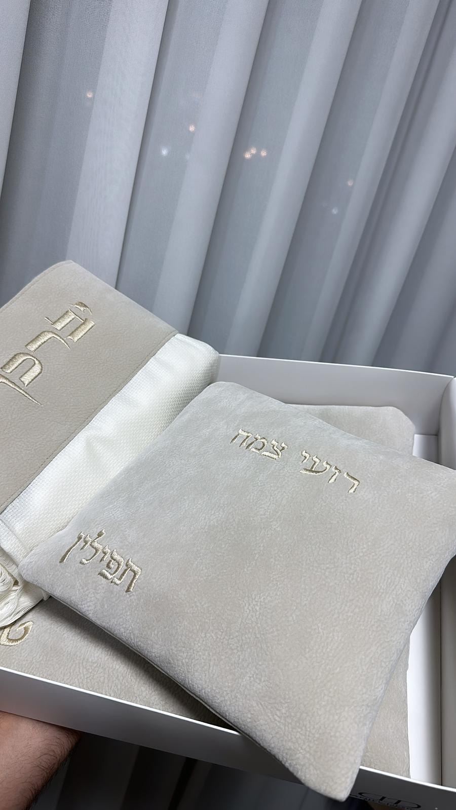 סט כיסויים וטלית מהודרת 100% צמר בעיצוב ייחודי שלנו