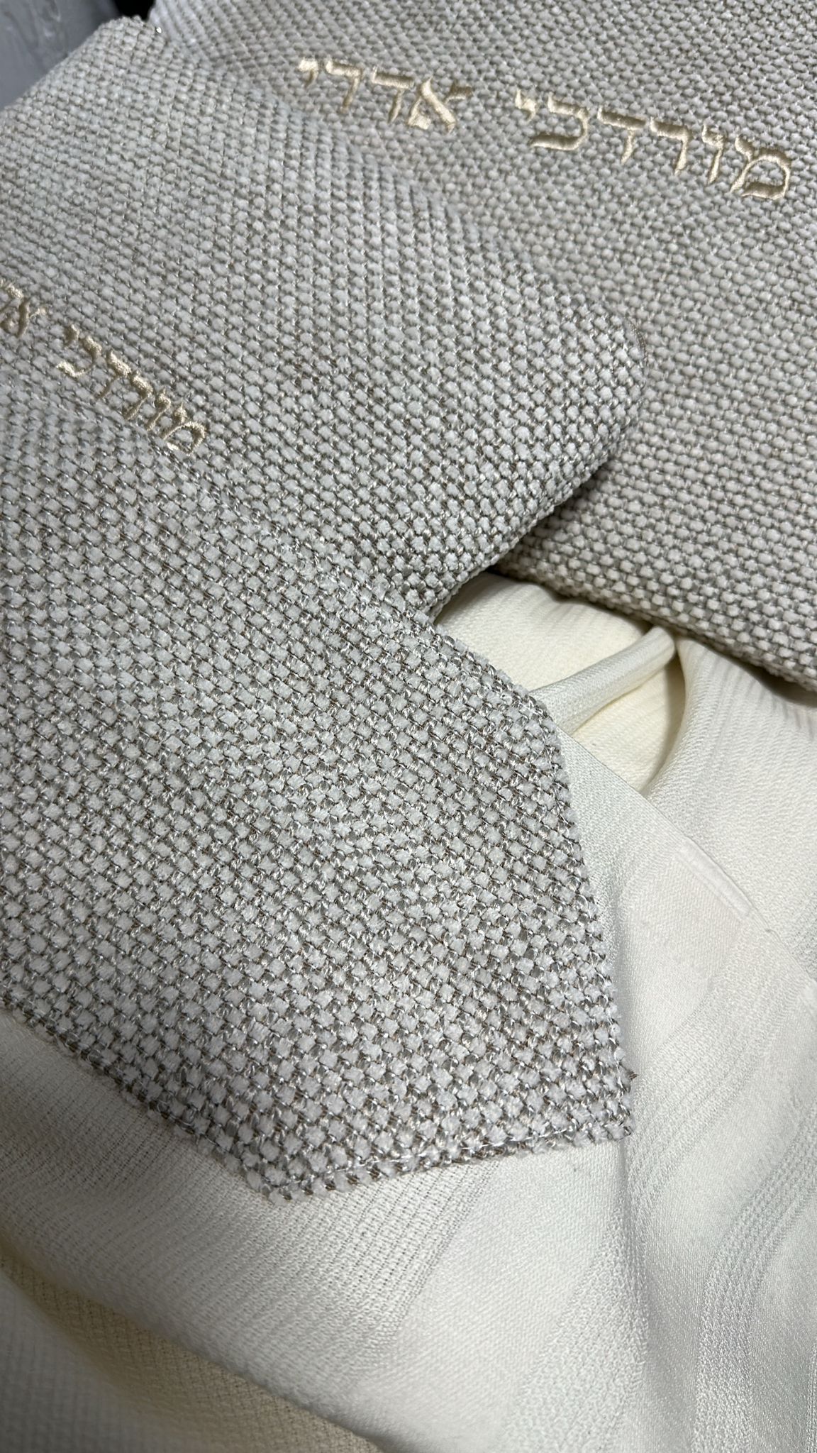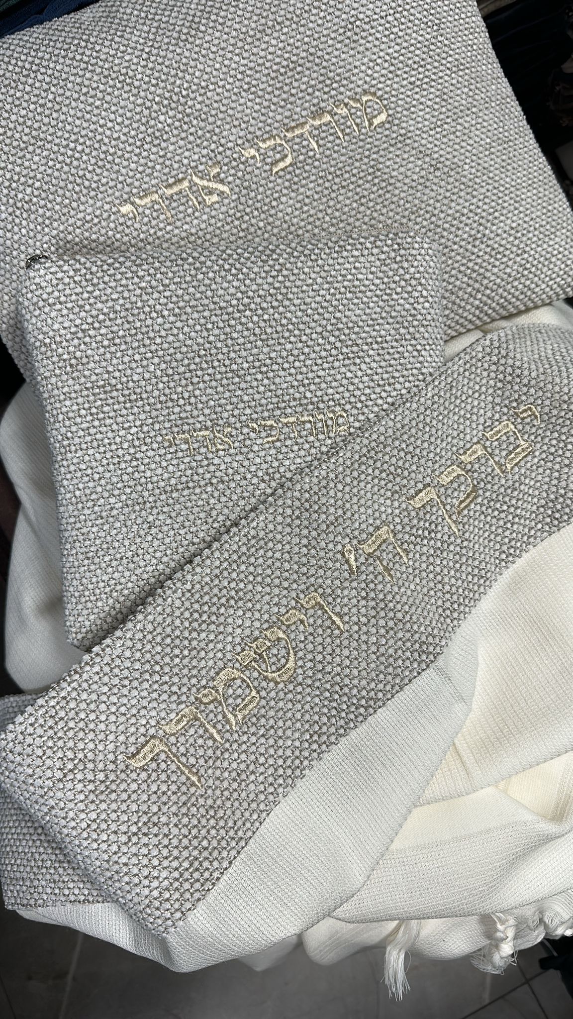סט כיסויים וטלית מהודרת 100% צמר בעיצוב ייחודי שלנו , תוצרת הארץ