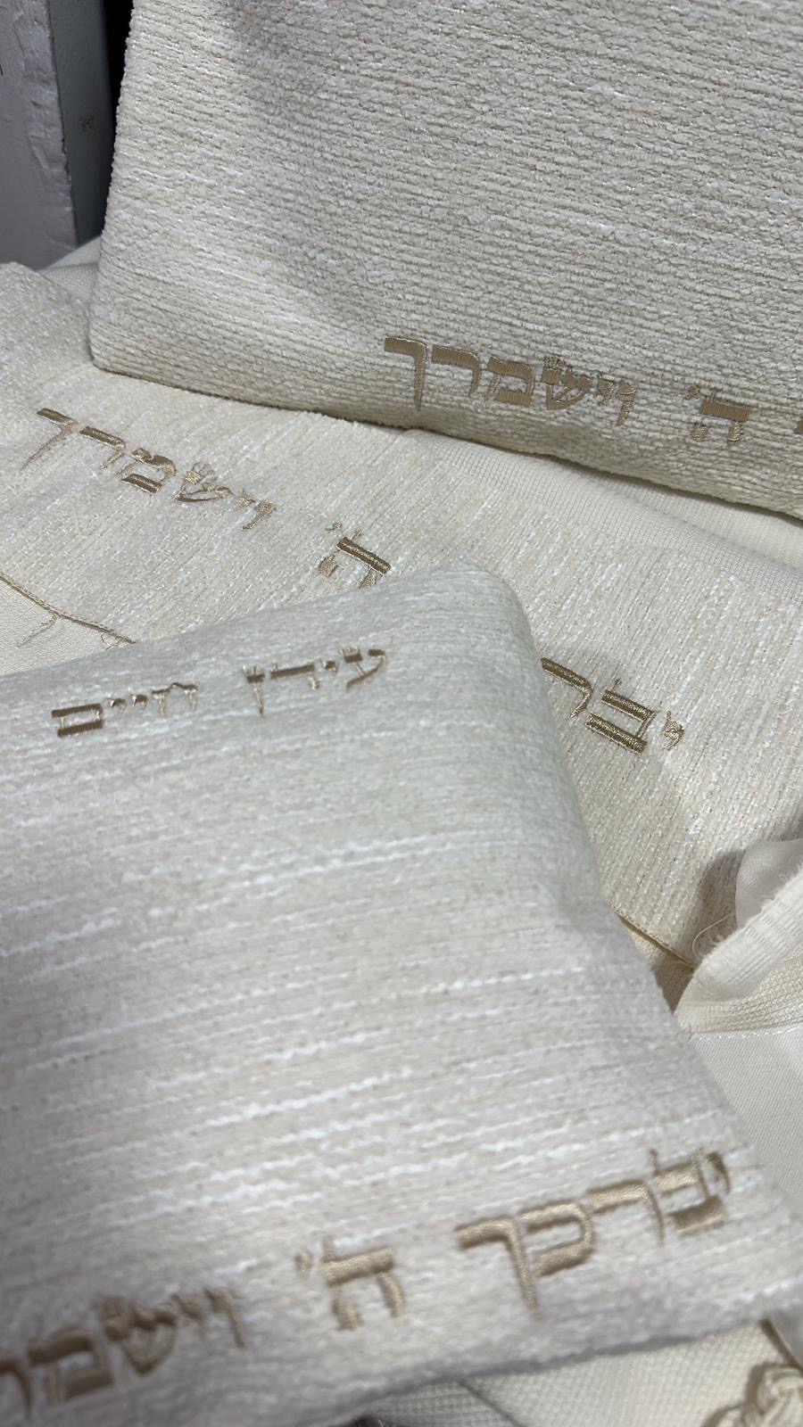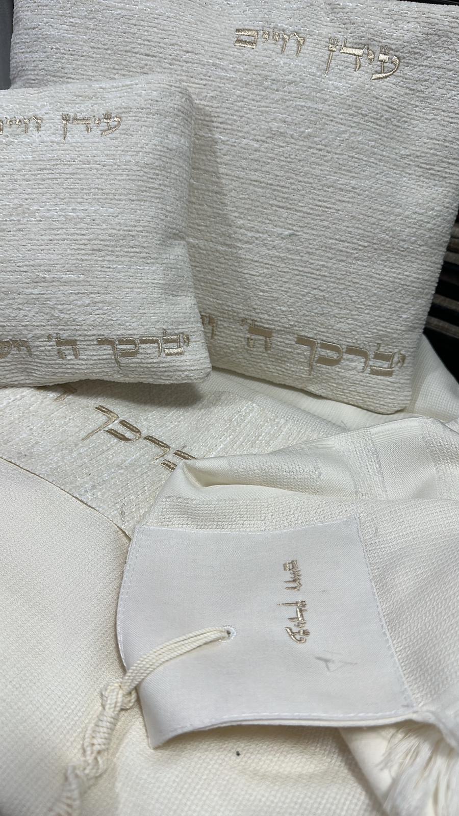 סט כיסויים וטלית מהודרת 100% צמר בעיצוב ייחודי שלנו, תוצרת הארץ
