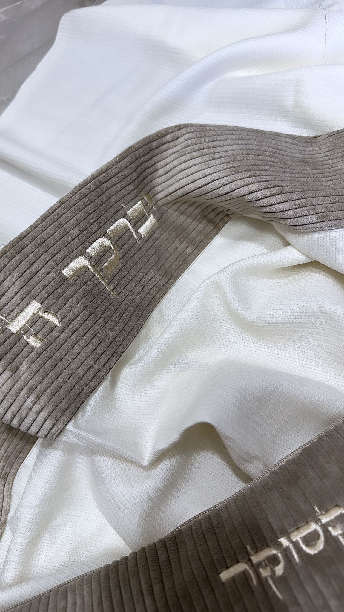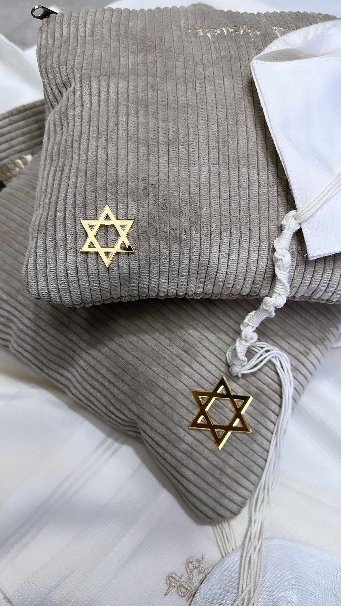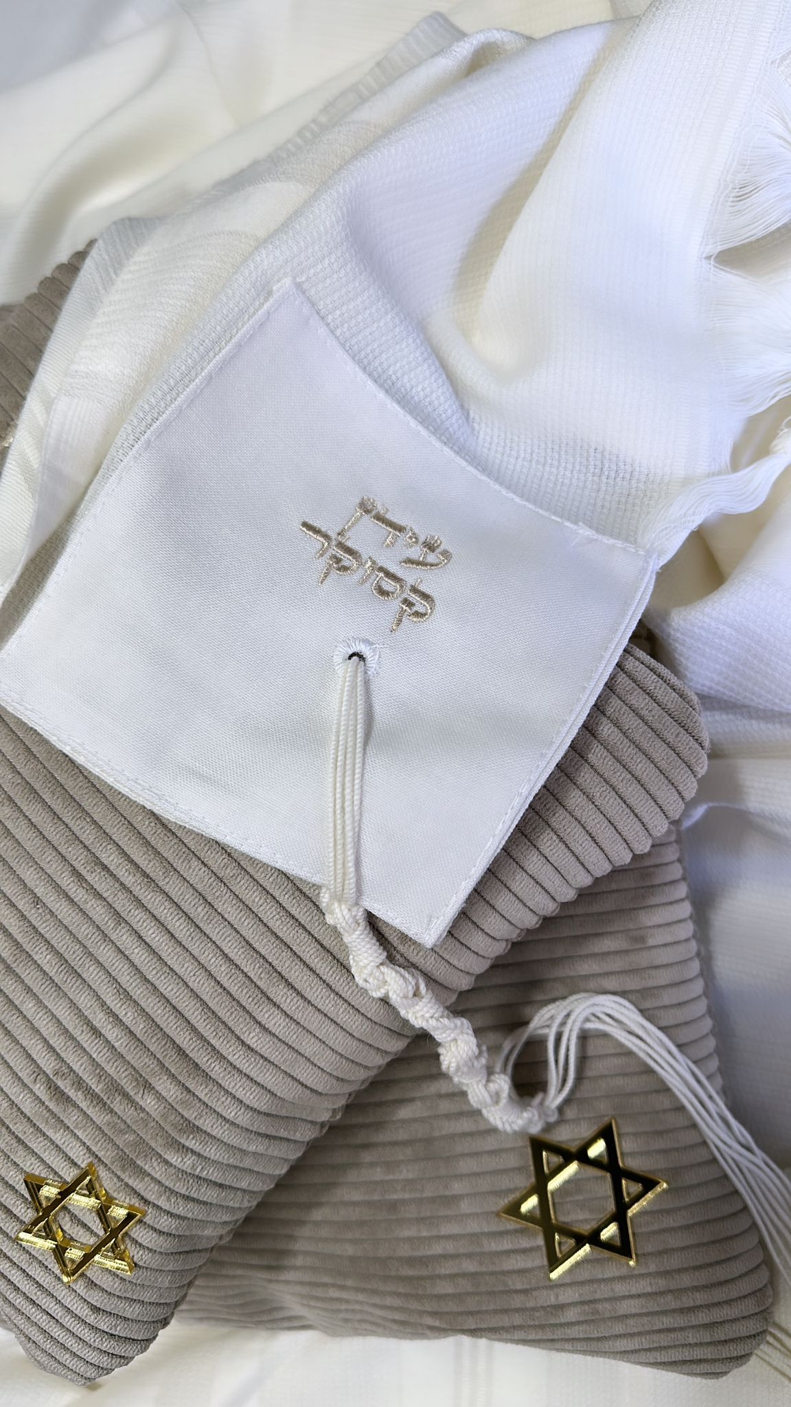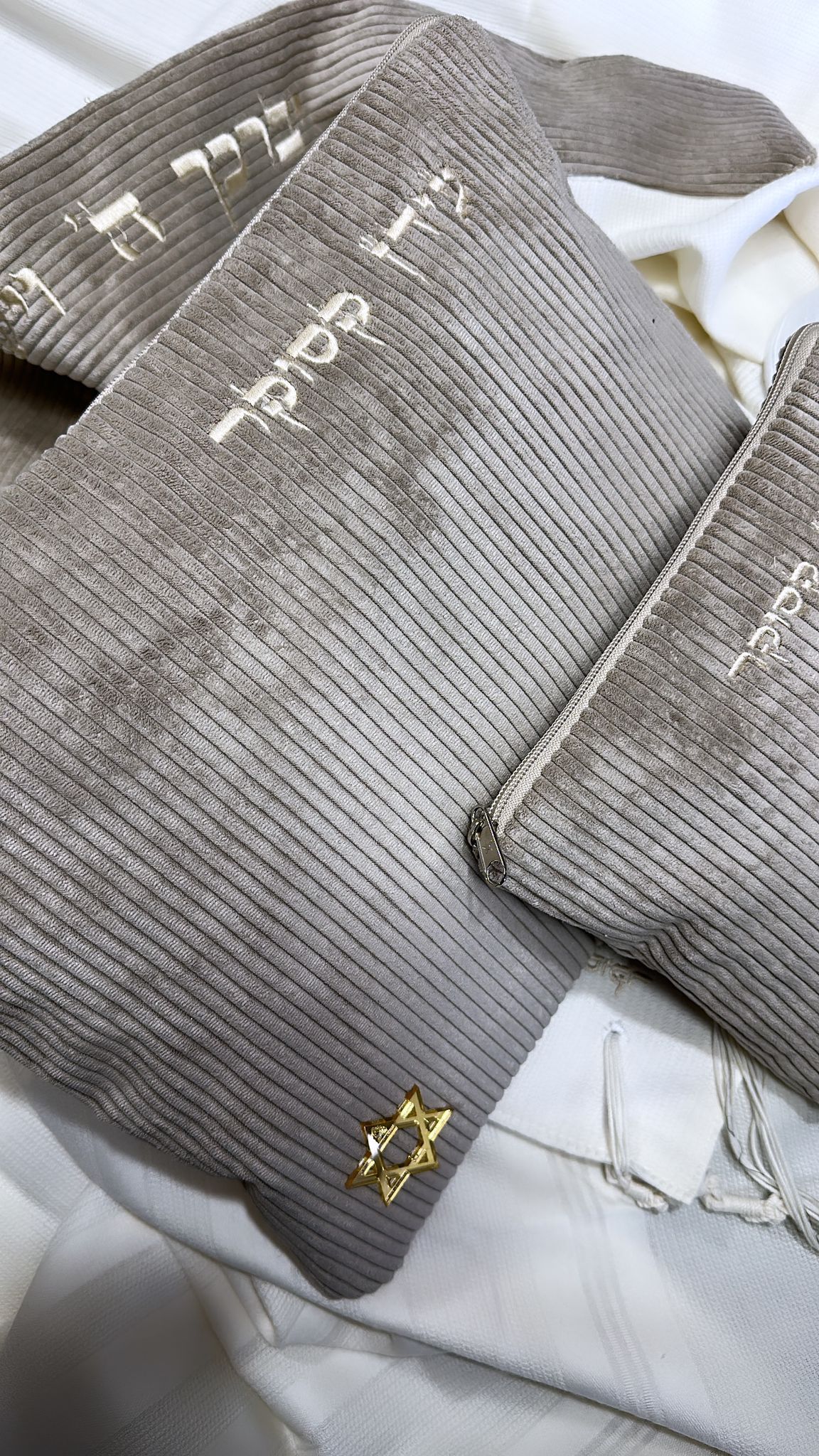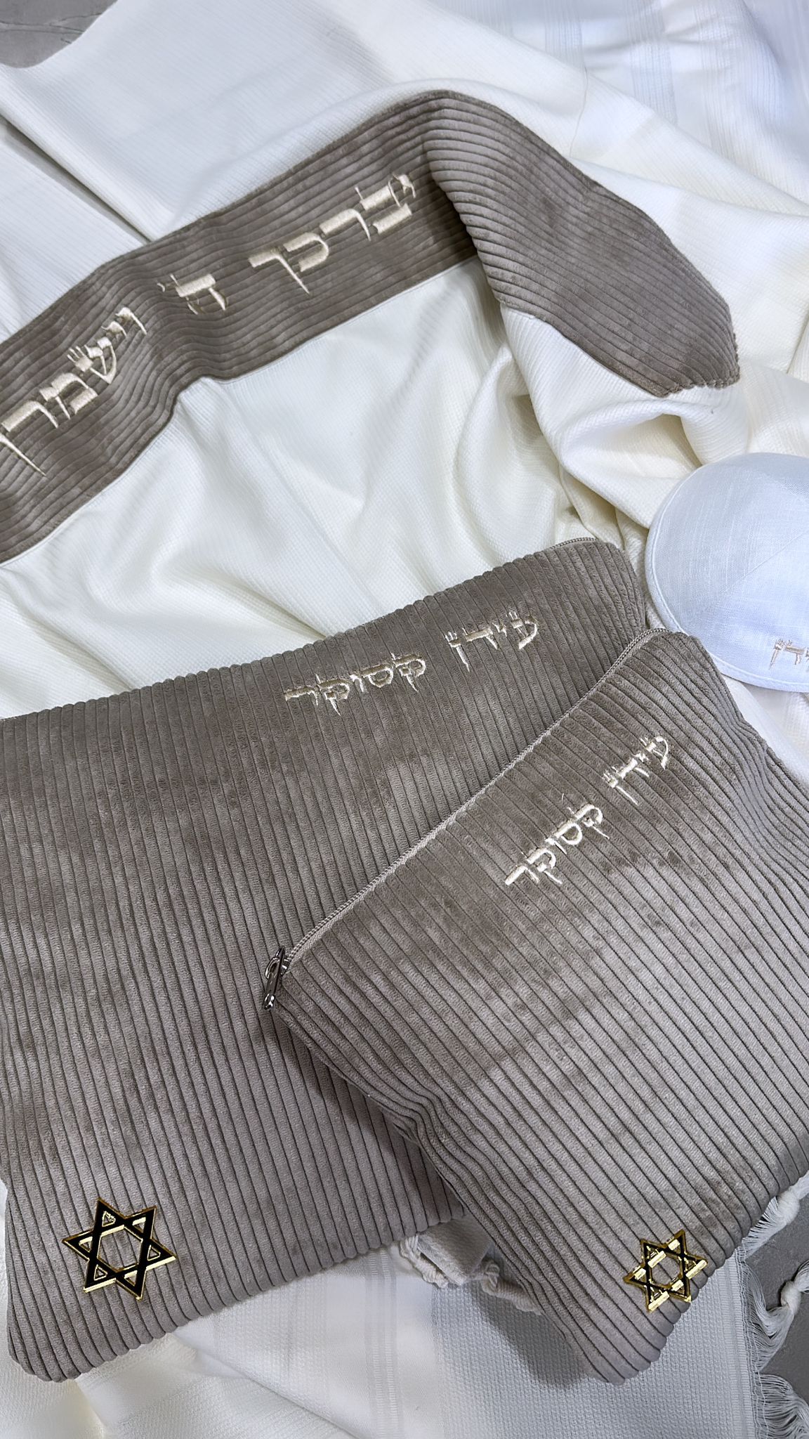 סט כיסויים וטלית מהודרת 100% צמר בעיצוב ייחודי שלנו , תוצרת הארץ