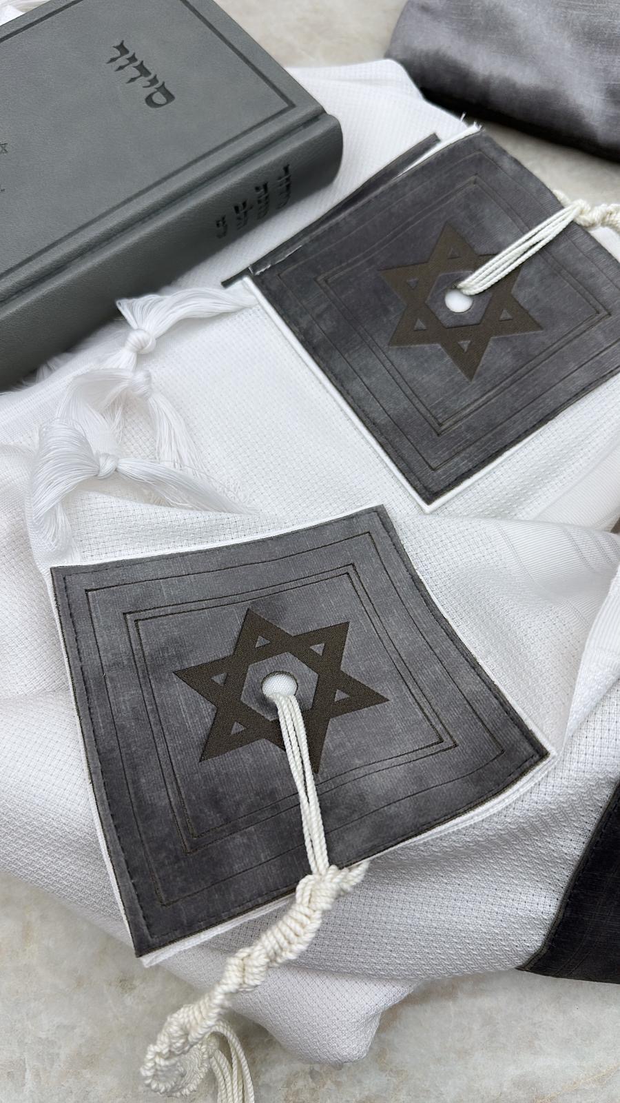 סט כיסויים וטלית מהודרת 100% צמר דגם איטליה הכולל בטנה איכותית, עשוי מ100% קטיפה איטלקית