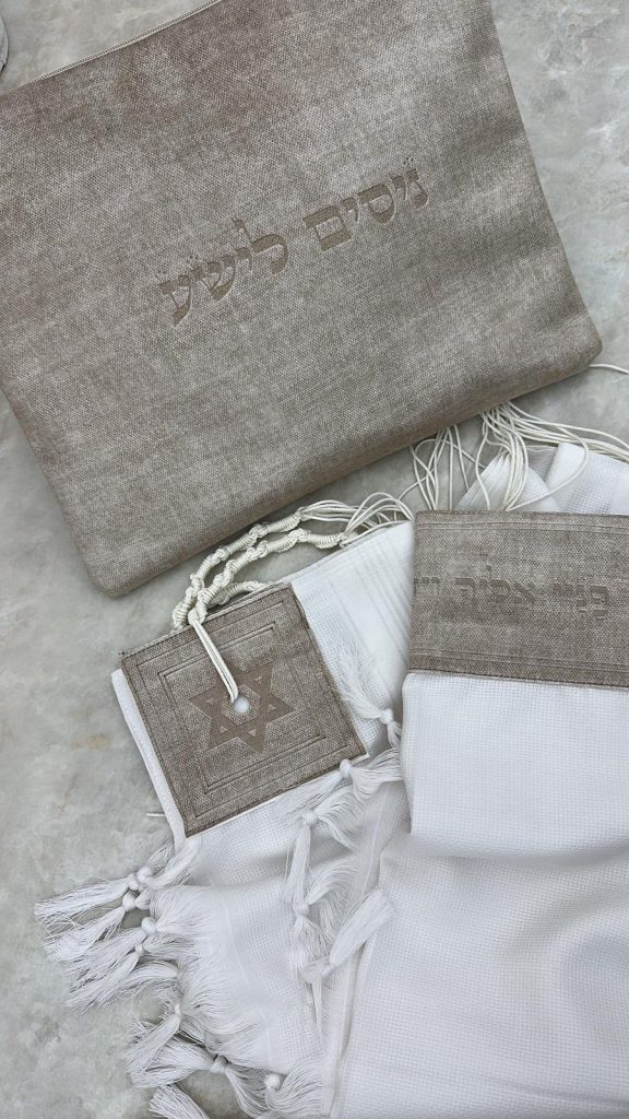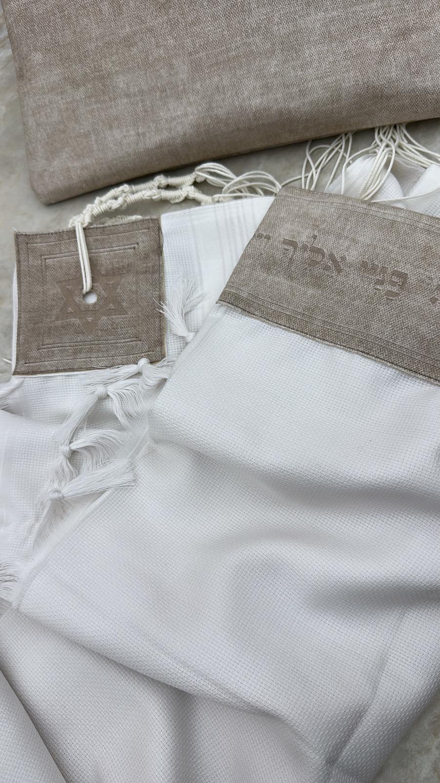 סט כיסויים וטלית מהודרת 100% צמר בעיצוב ייחודי שלנו הכולל בטנה איכותית
