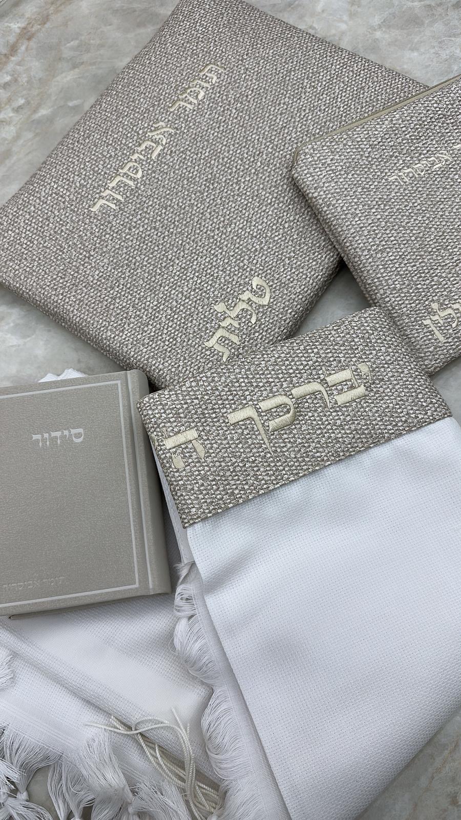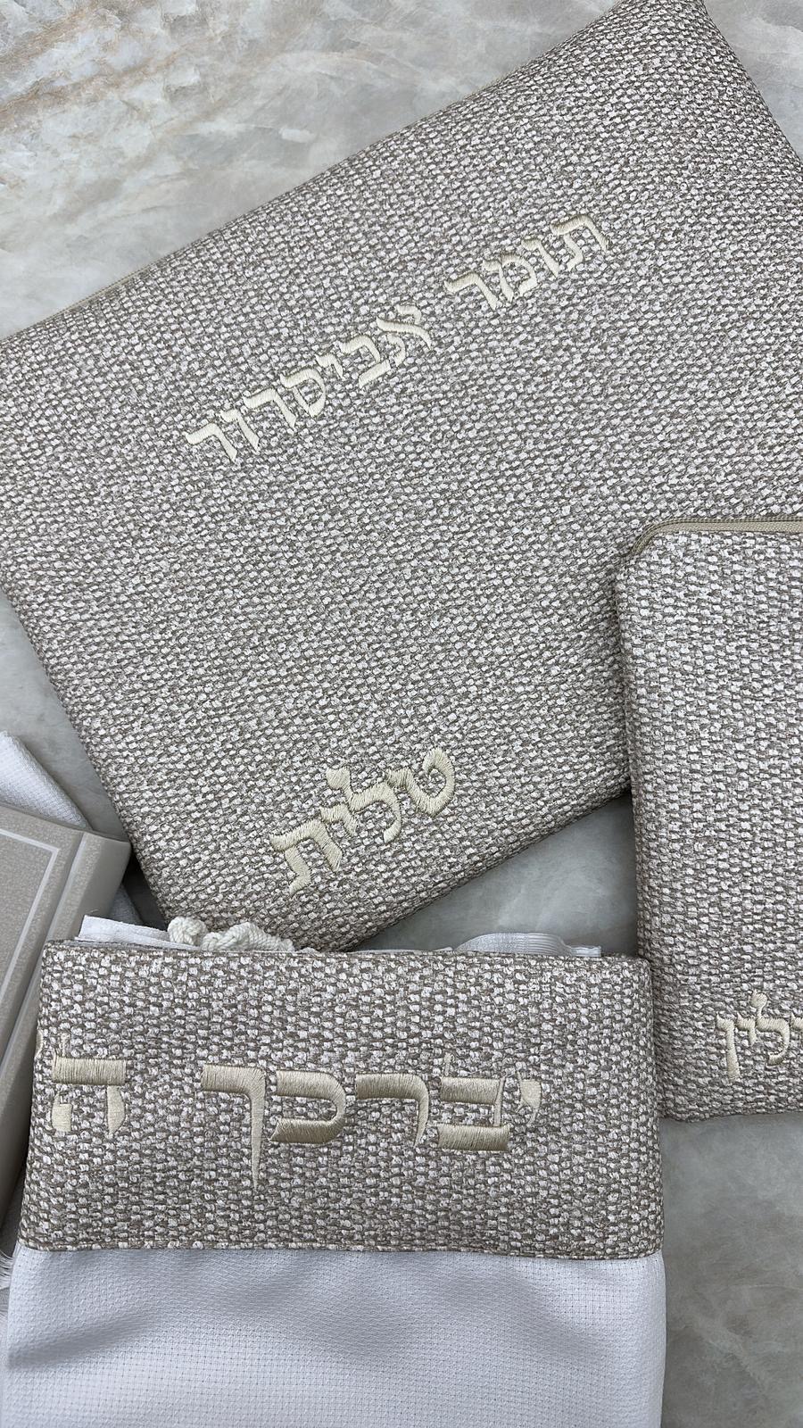 סט כיסויים וטלית מהודרת 100% צמר בעיצוב ייחודי שלנו הכולל בטנה איכותית