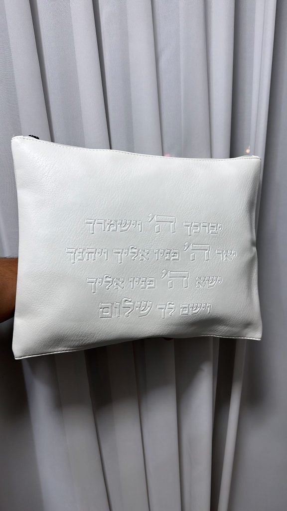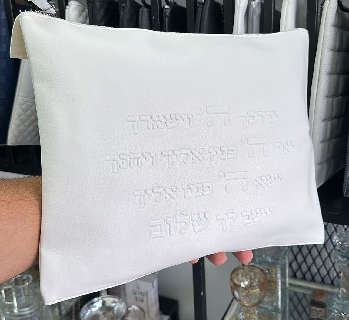 סט כיסויים דגם דמוי עור יברכך אותיות מובלטות צבע לבן