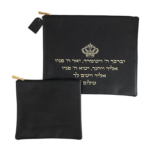 סט כיסויים דגם דמוי עור יברכך עם כתר צבע שחור עם אותיות מובלטות בצבע זהב