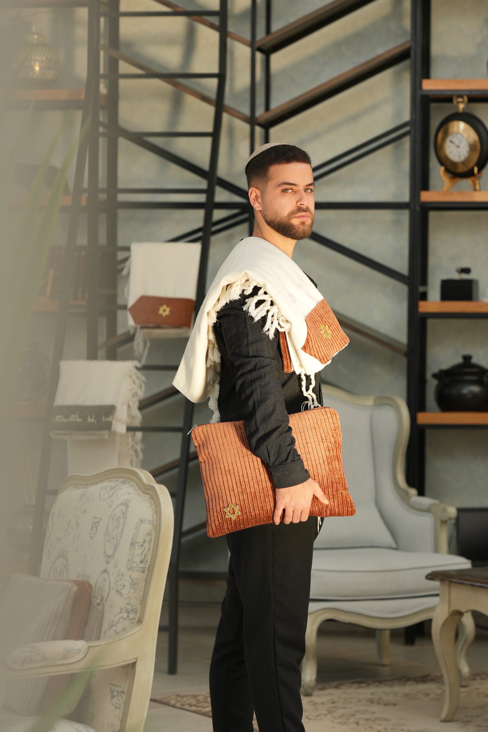 סט כיסויים דניאל דגם קורדרוי עבה צבע חמרה מגן דוד זהב