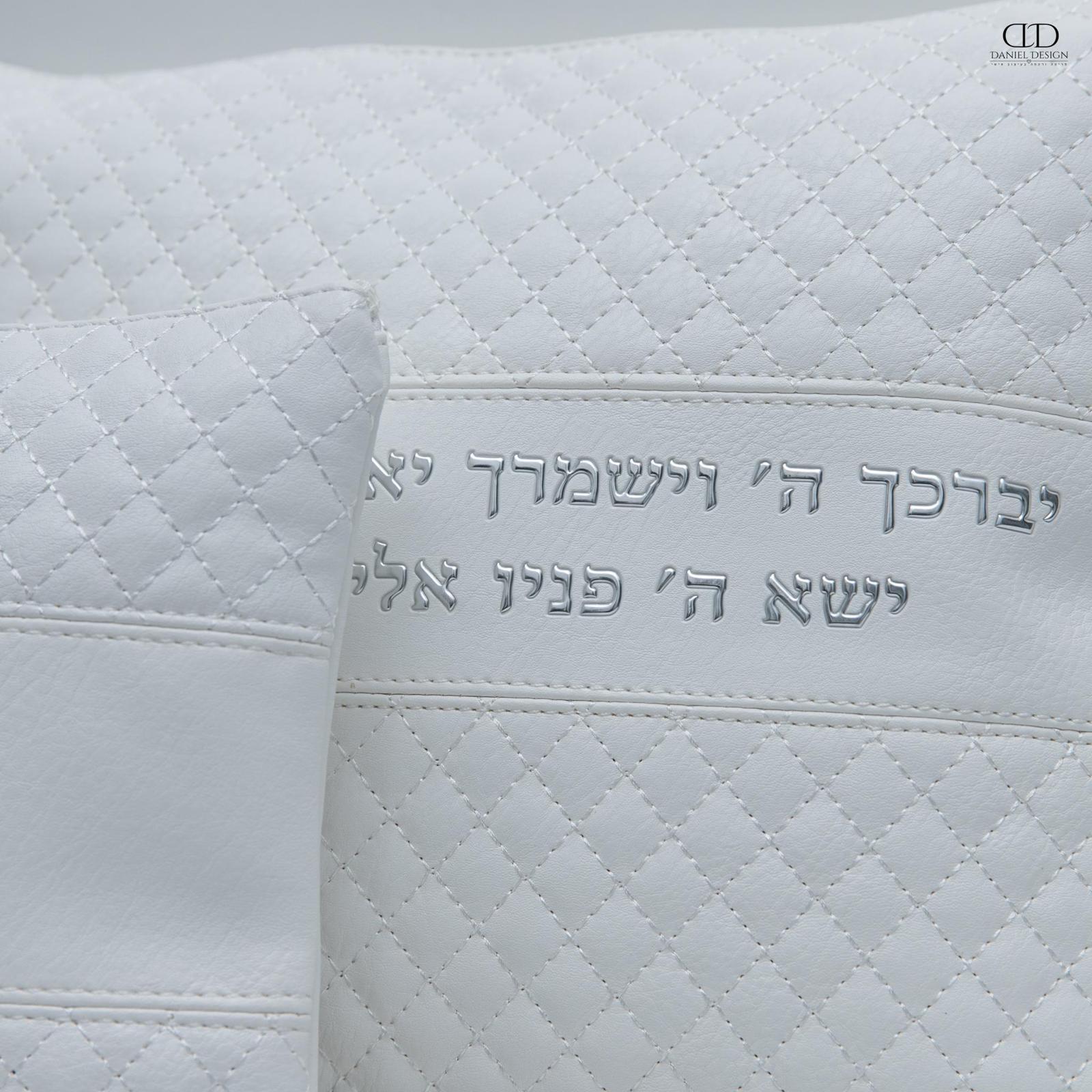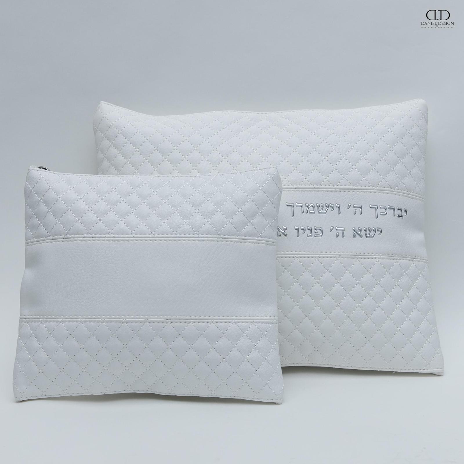 סט כיסויים דגם מעוינים יברכך צבע לבן מתכת בצבע כסף