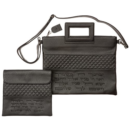 דגם מעוינים יברכך רקום לרוחב צבע שחור