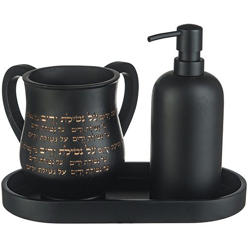 סט סבונייה ונטלה מהודר דגם על נטילת ידיים צבע שחור