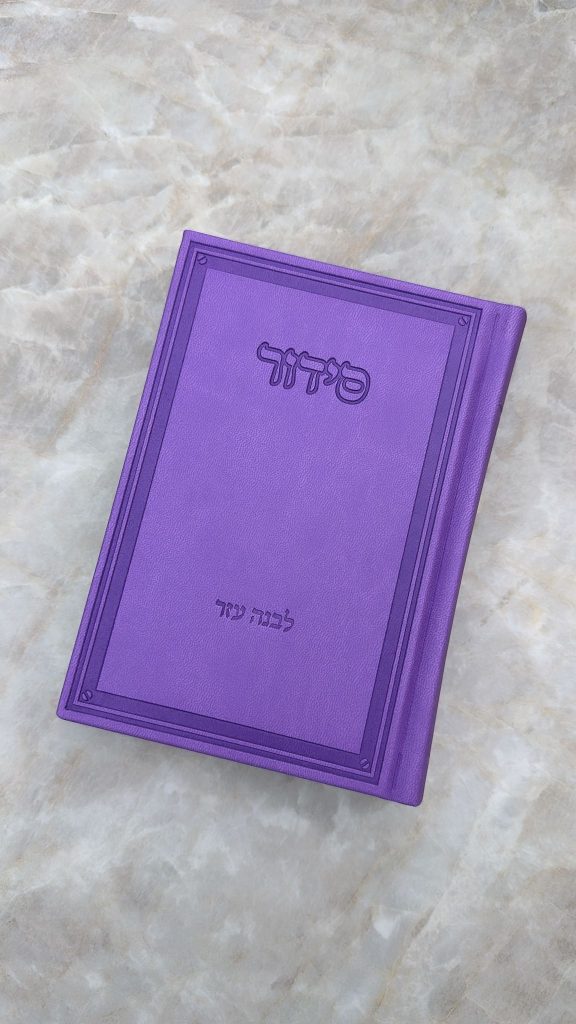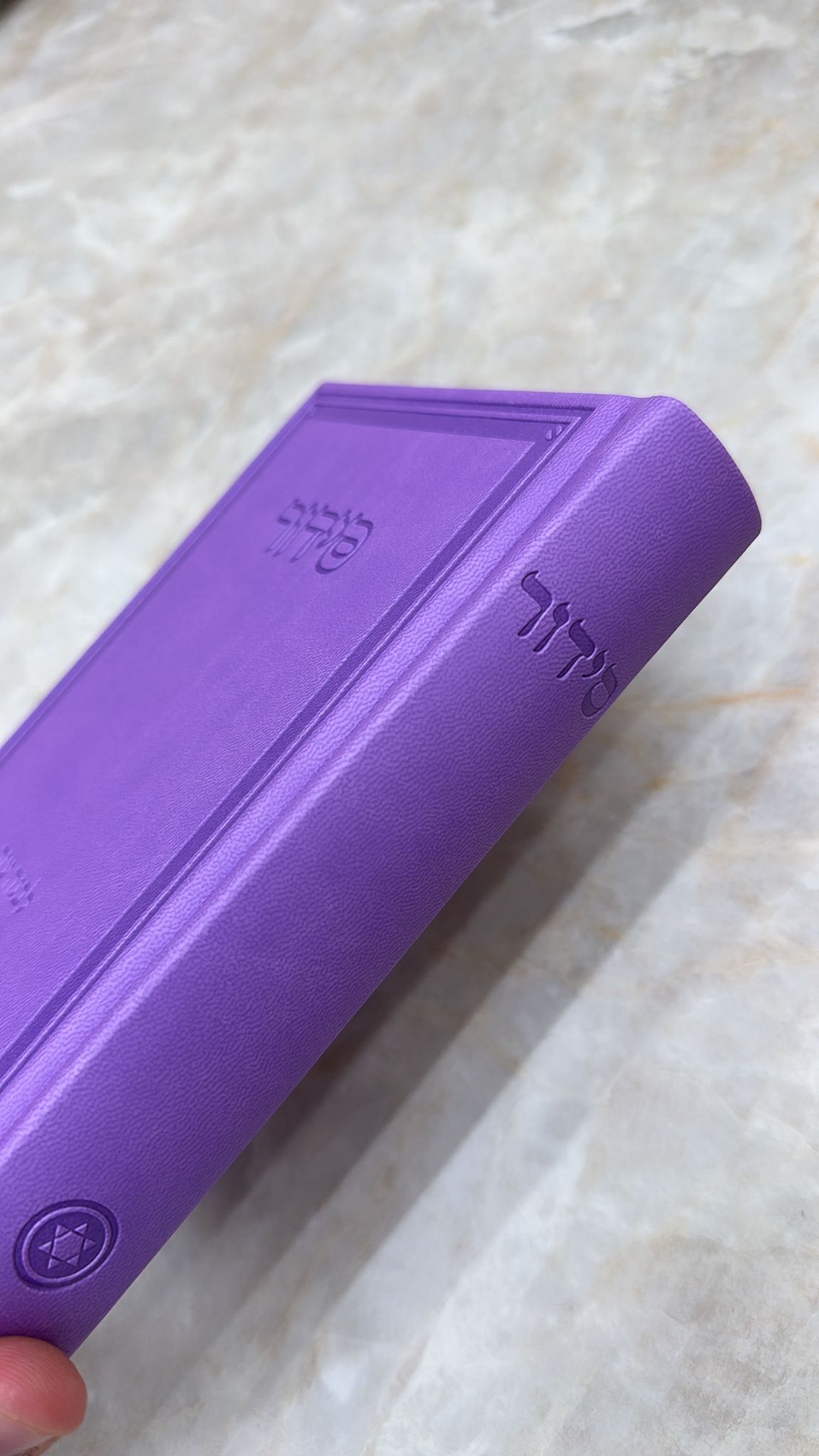 סידור דגם דמוי עור צבע סגול כתב גדול, הסידור כולל בתוכו תהילים ניתן להטביע שם בעברית / אנגלית לבחירת הלקוח