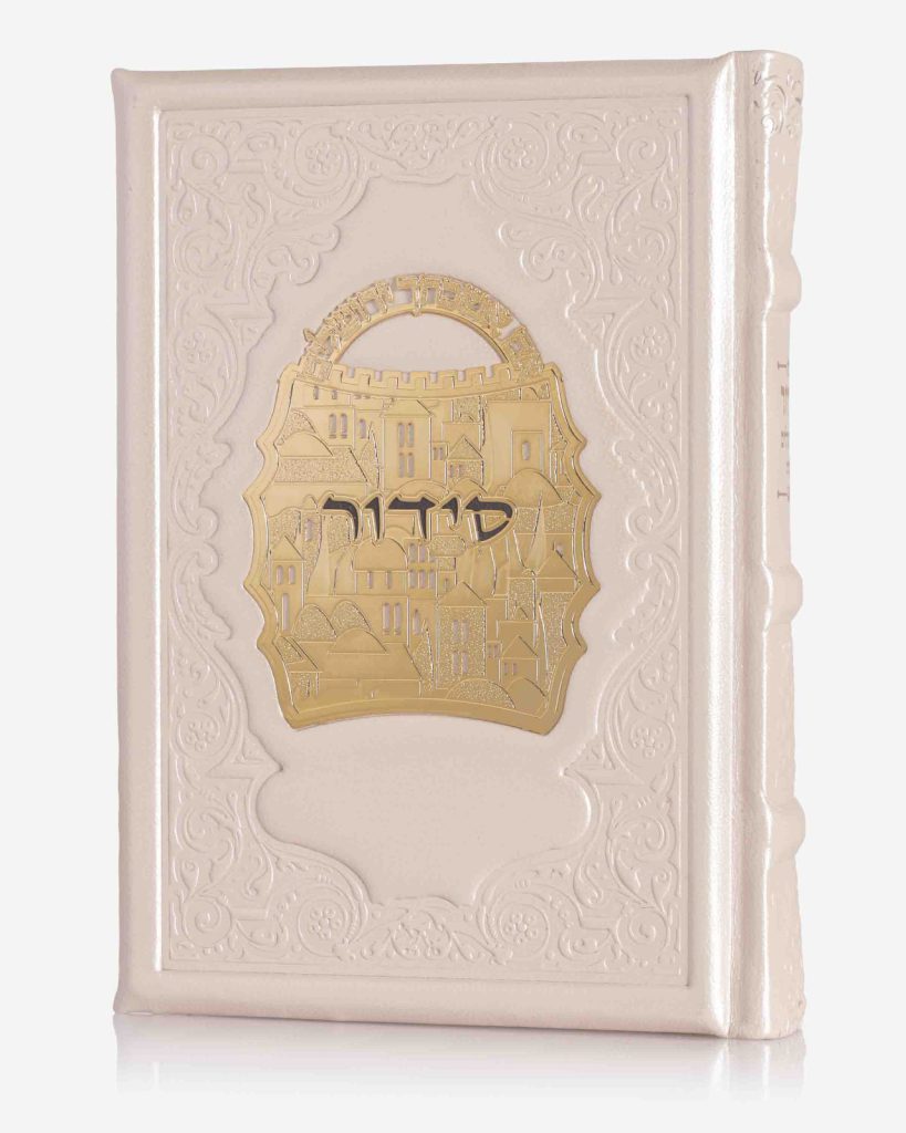 סידור מעור אמיתי צבע שמנת ניתן להטביע שם בעברית / אנגלית לבחירת הלקוח