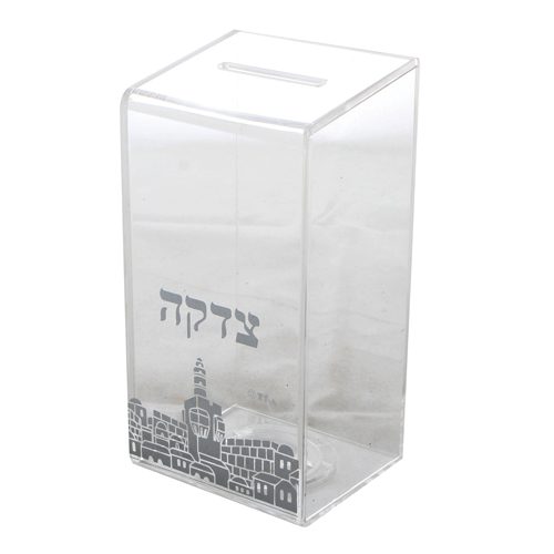 קופת צדקה פרספקט דגם ירושלים שקוף כסף