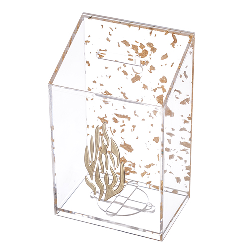 קופת צדקה פרספקט שקוף דגם נצנץ האש שלי צבע זהב
