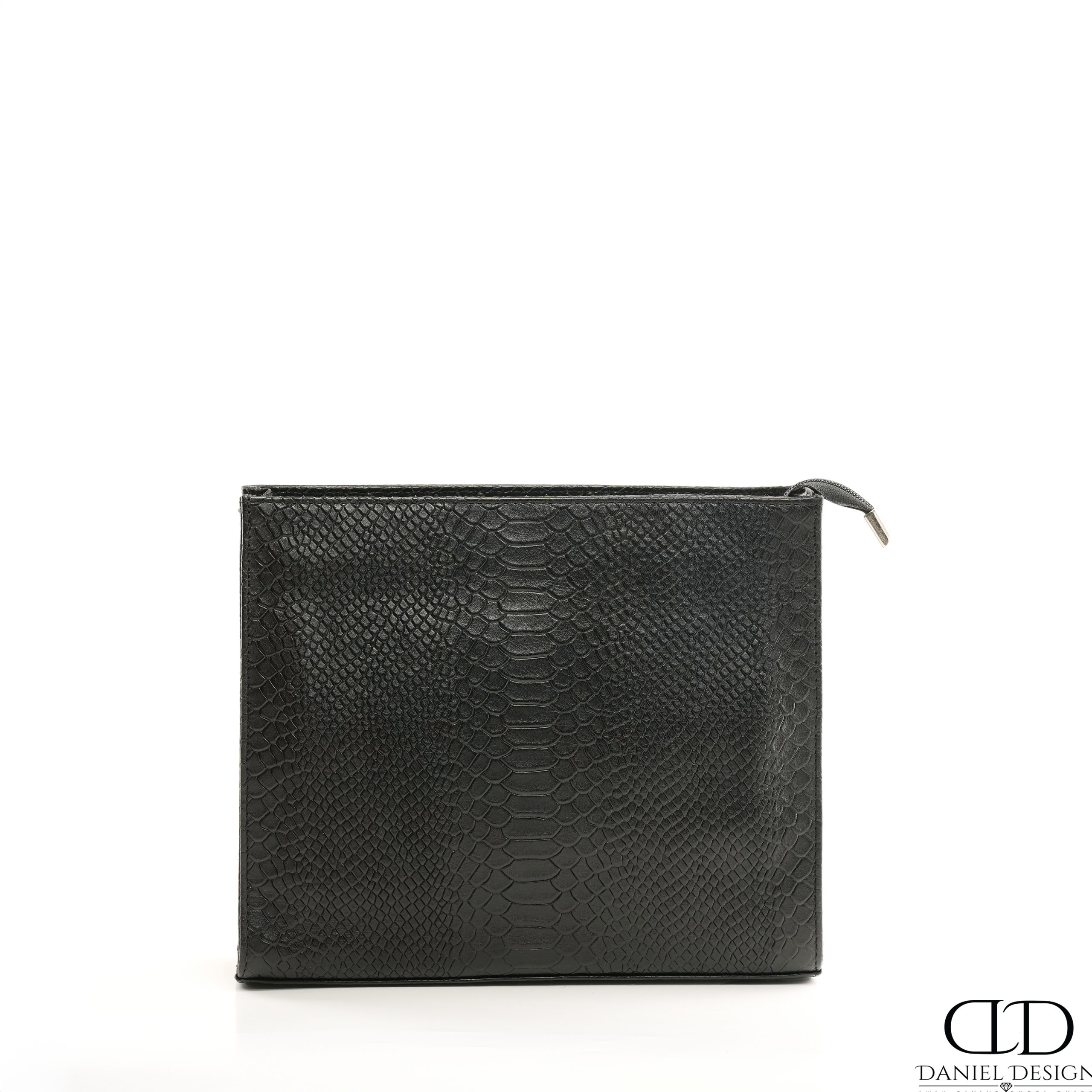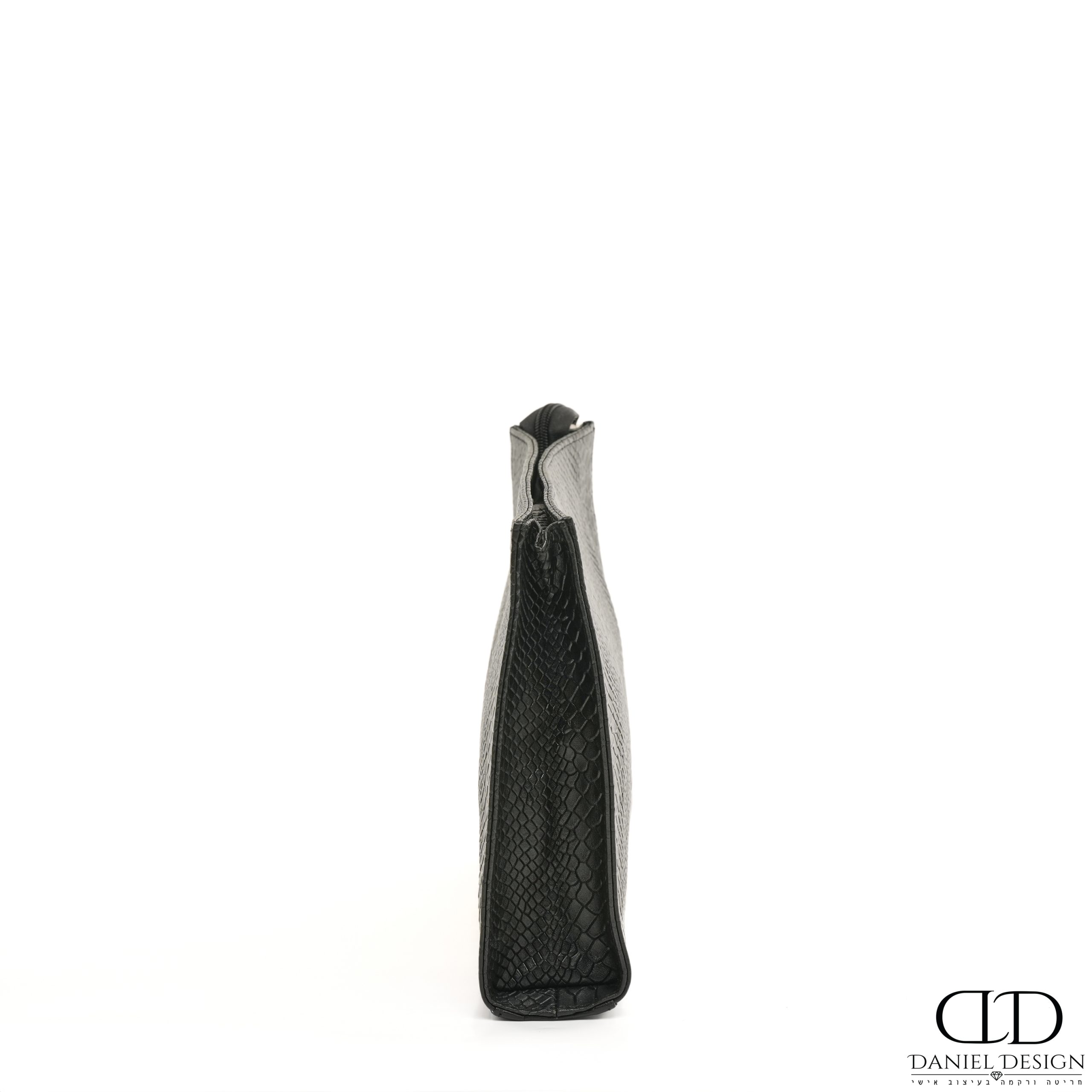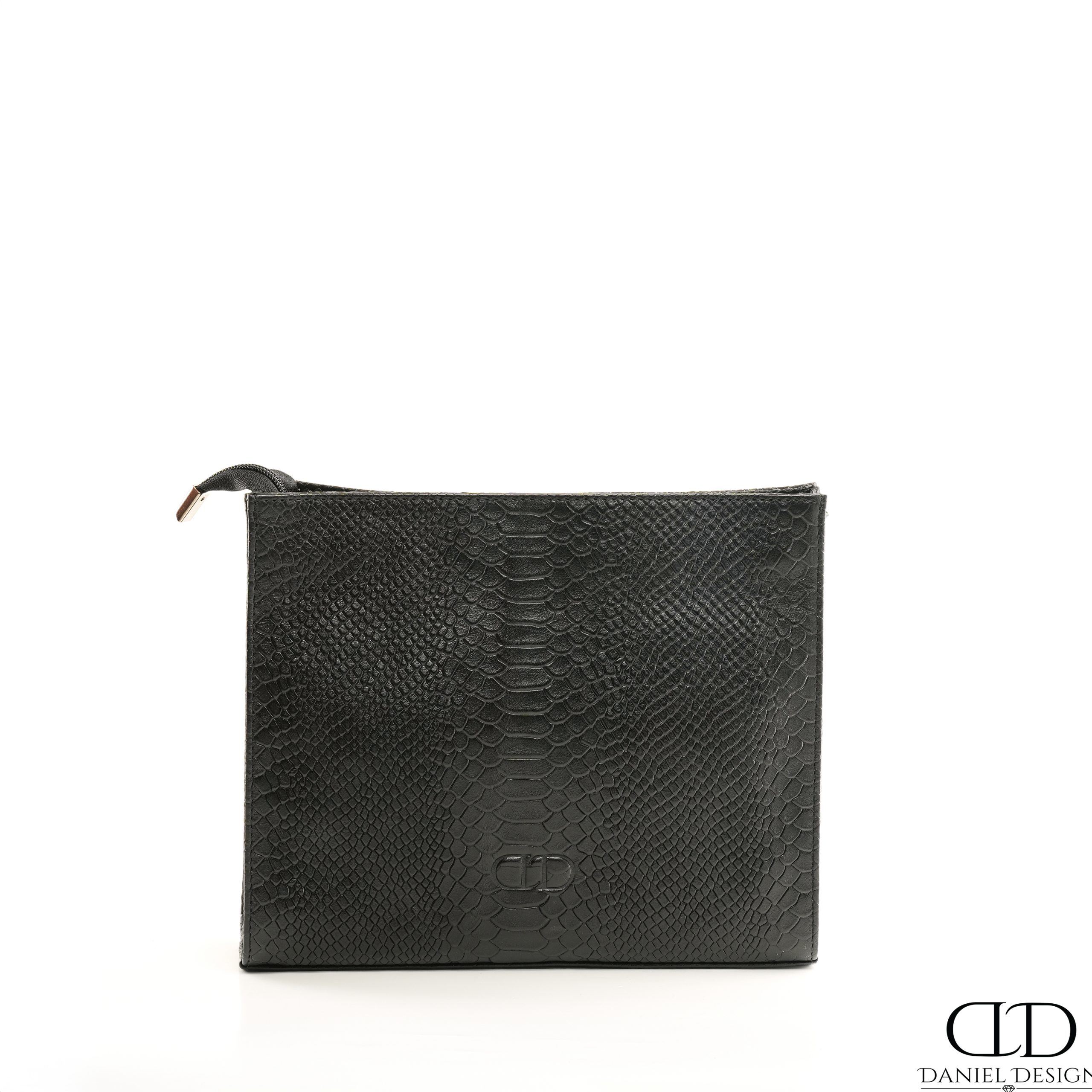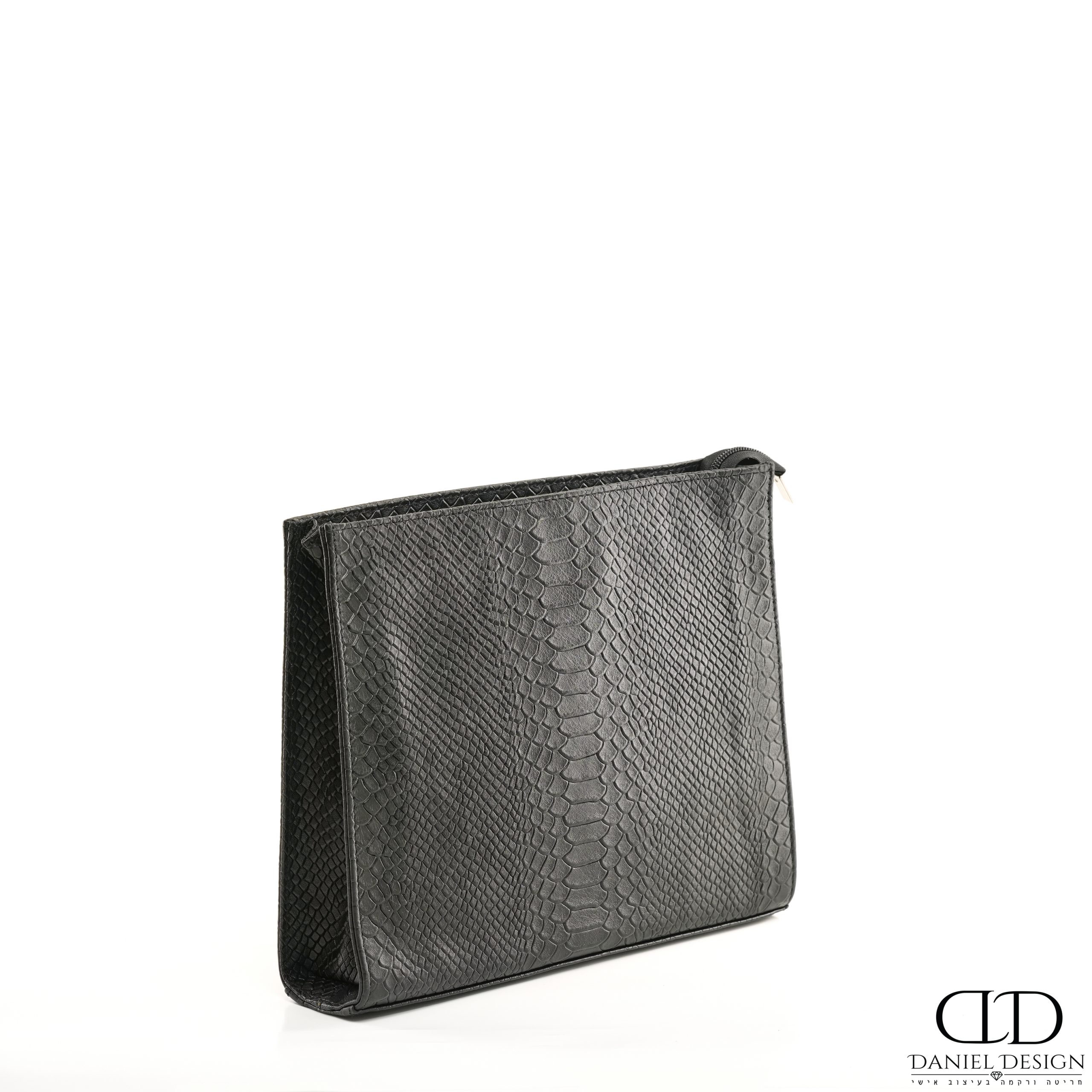 תיק קלאץ' Daniel עור אמיתי דגם עור קרוקו צבע שחור תוצרת הארץ, ייצור כחול לבן ניתן להוסיף שם בעברית/אנגלית לבחירת הלקוח