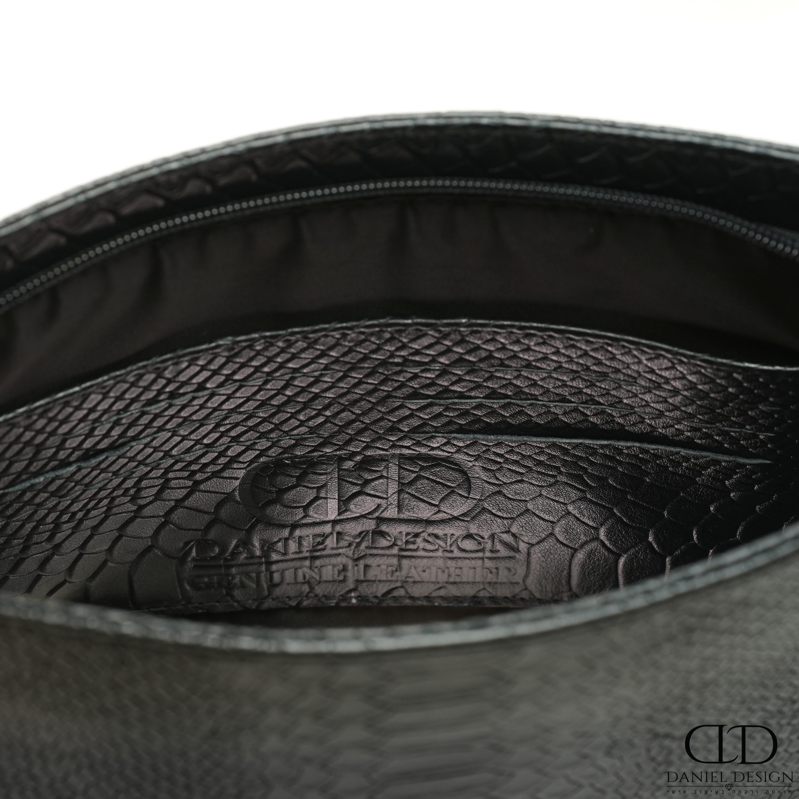 תיק קלאץ' Daniel עור אמיתי דגם עור קרוקו צבע שחור