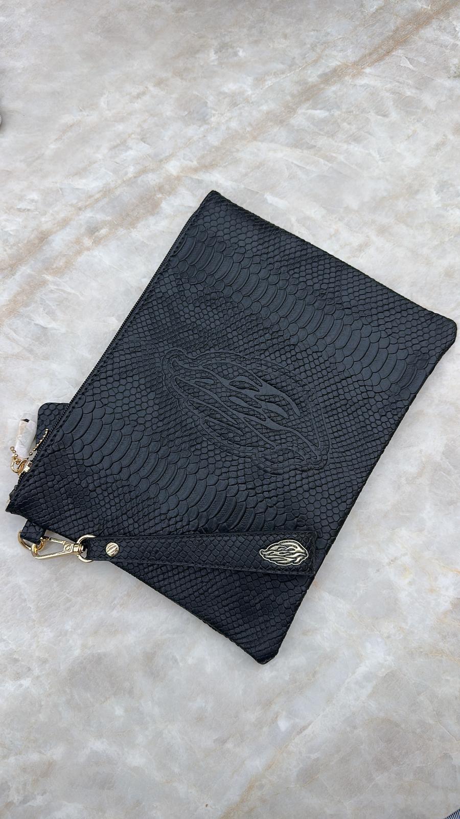 תיק תפילין קלאץ' דמוי עור קרוקו דגם האש שלי צבע שחור