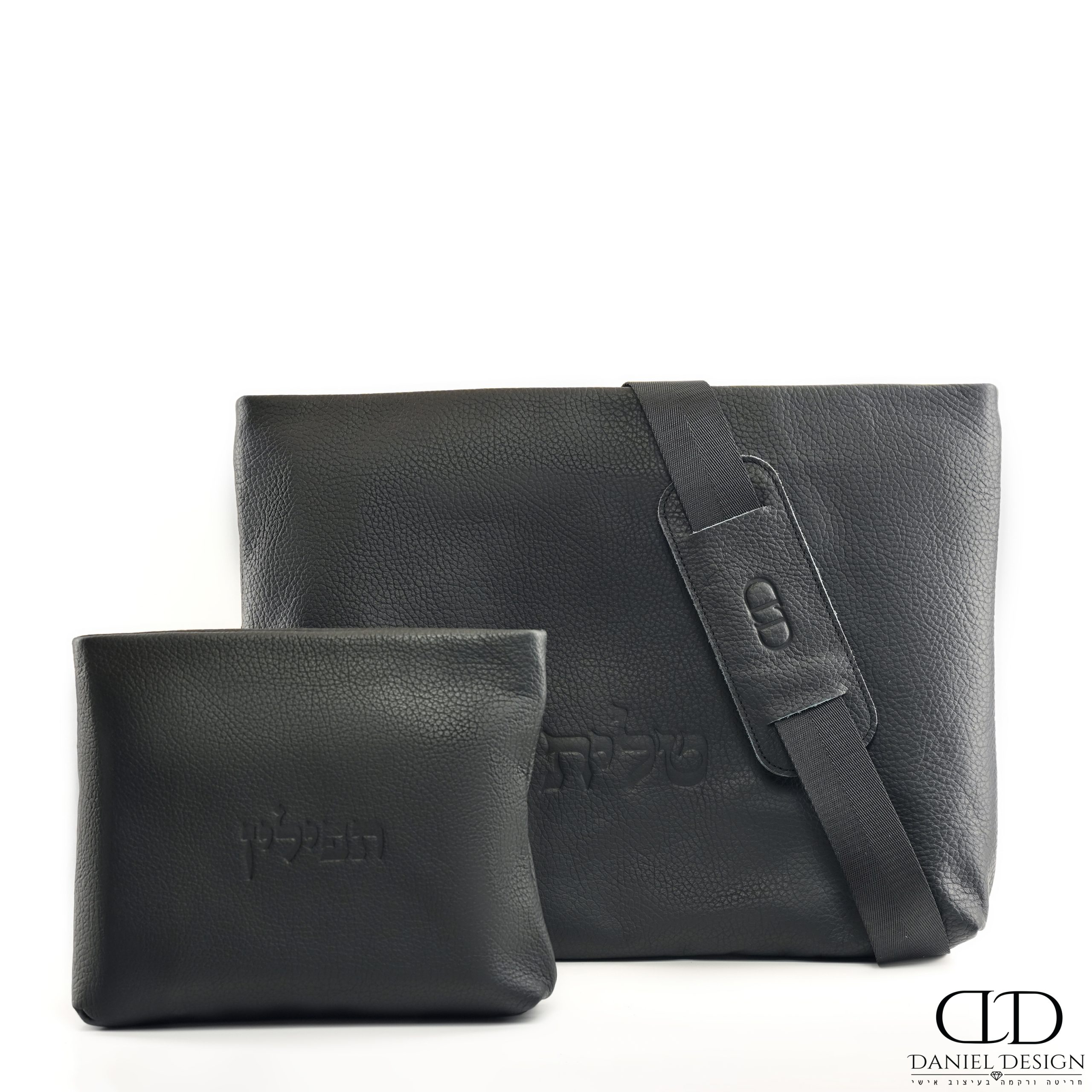 סט תיקים לטלית ותפילין תואם מעור אמיתי כולל רצועת כתף הניתנת להסרה