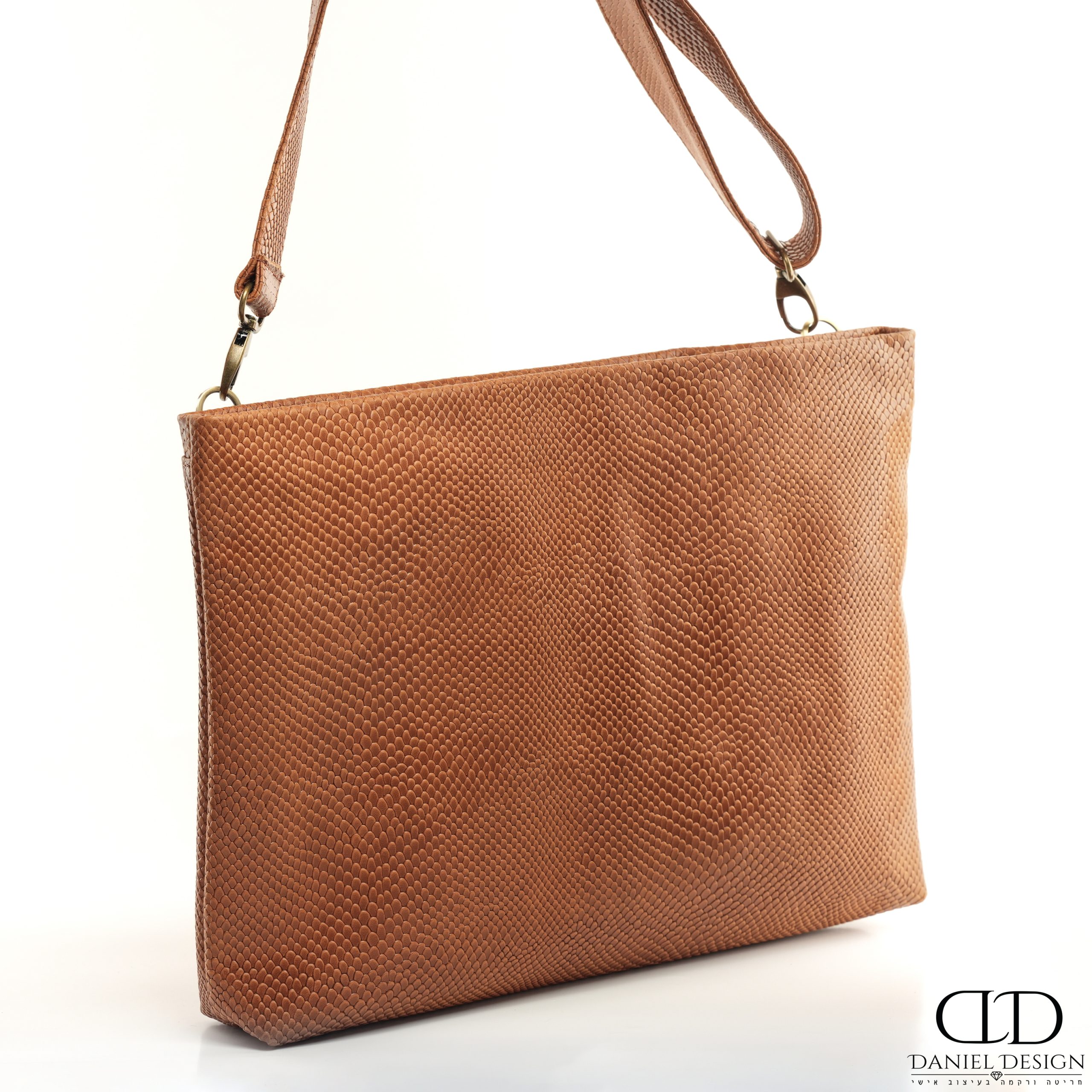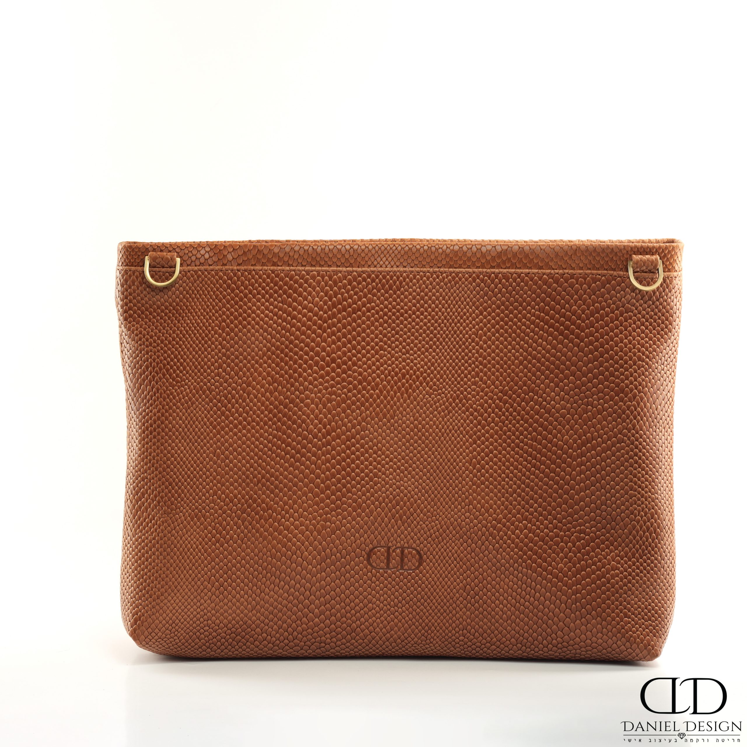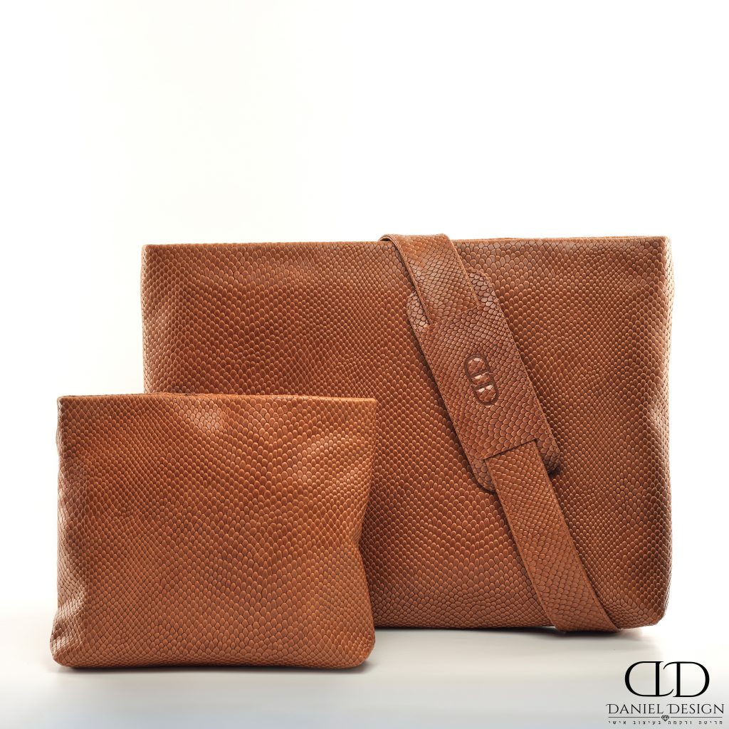 סט תיקים DANIEL עור אמיתי דגם עור קרוקו צבע קאמל
