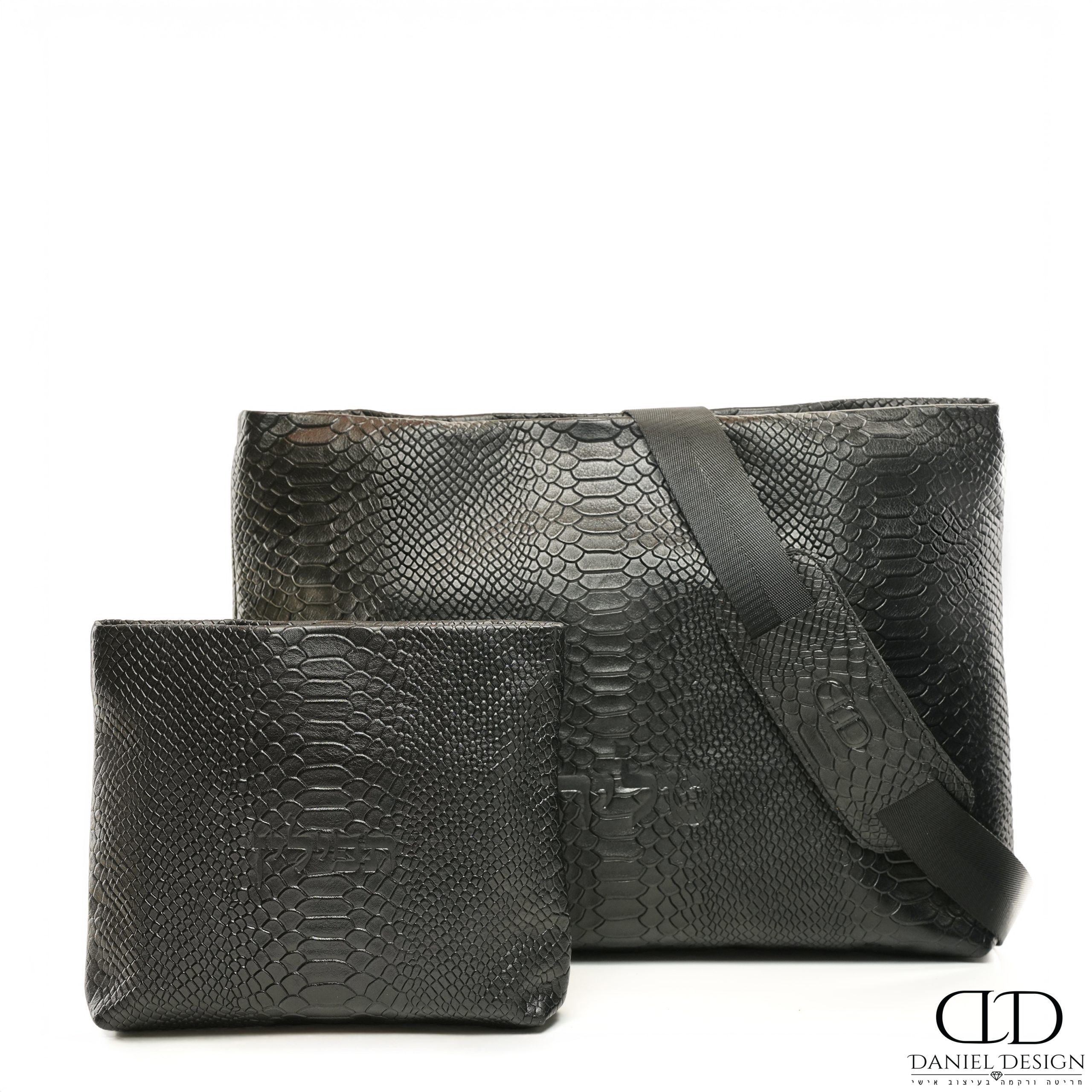 סט תיקים לטלית ותפילין תואם מעור אמיתי כולל רצועת כתף הניתנת להסרה