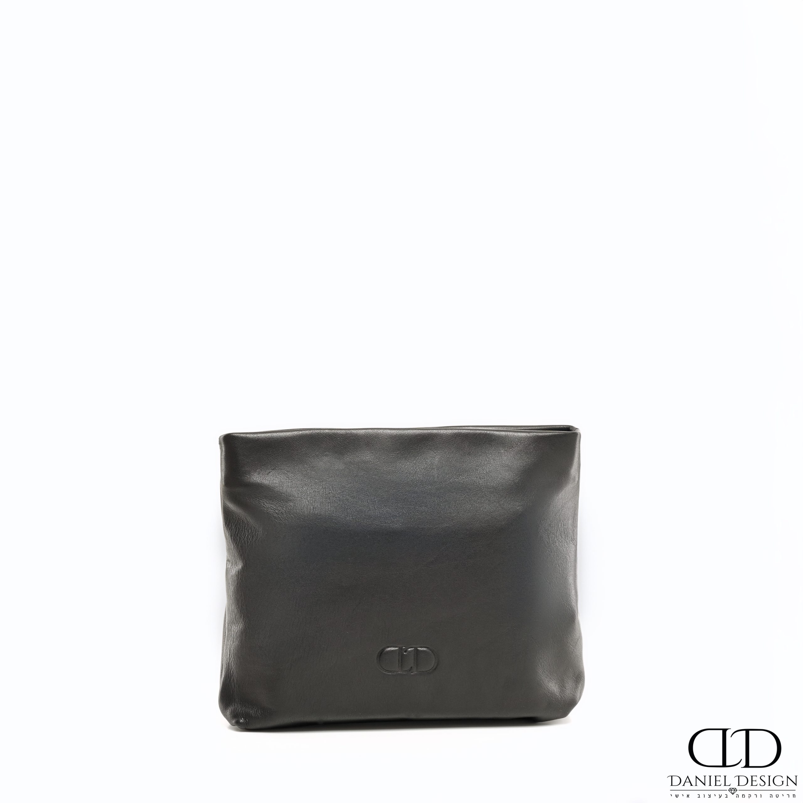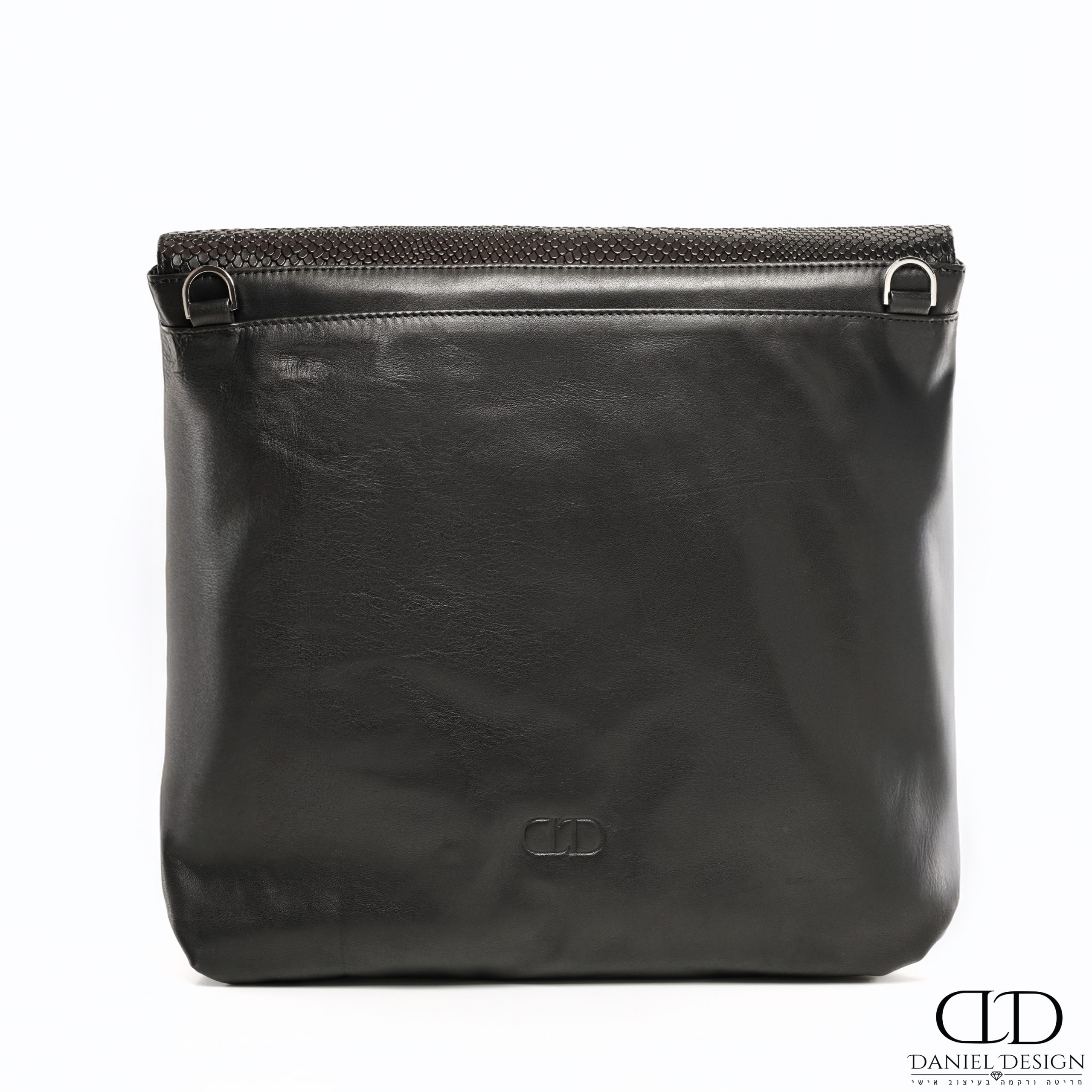 סט תיקים DANIEL עור אמיתי דגם קלאפה עור שחור חלק משולב מנוחש שחור