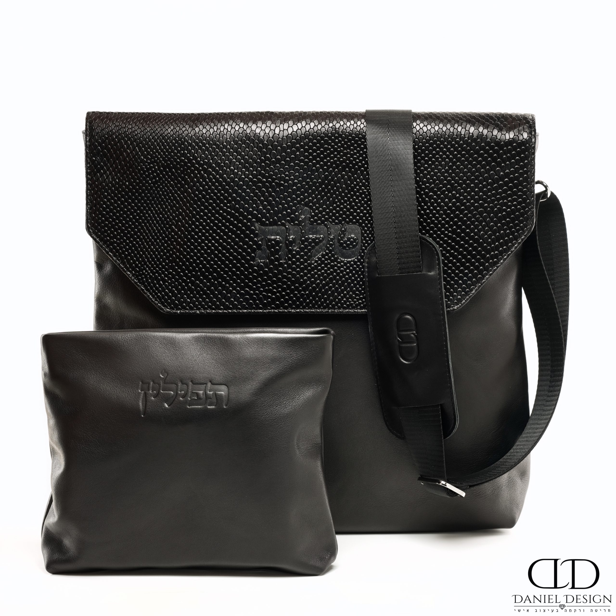 סט תיקים לטלית ותפילין תואם מעור אמיתי כולל רצועת כתף הניתנת להסרה