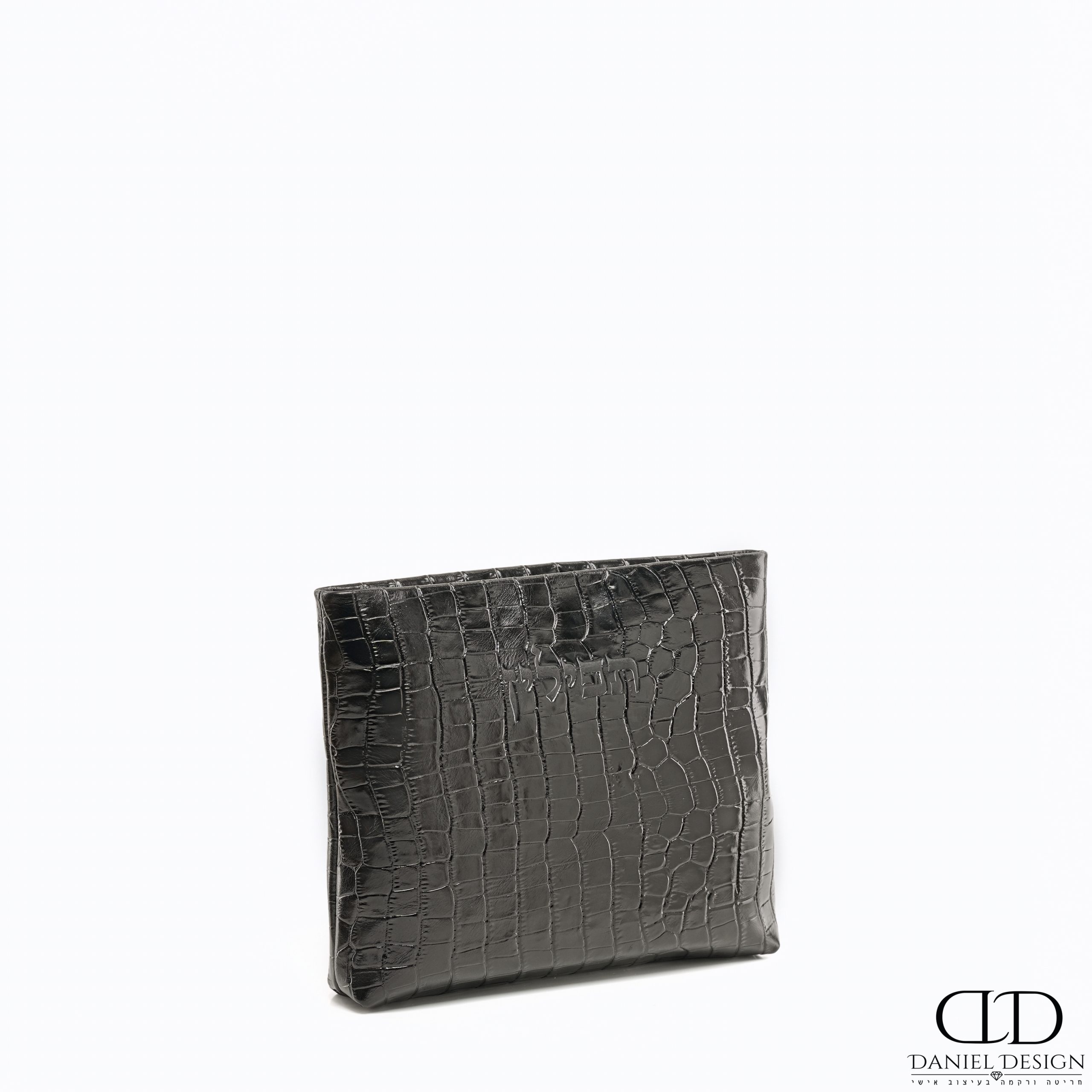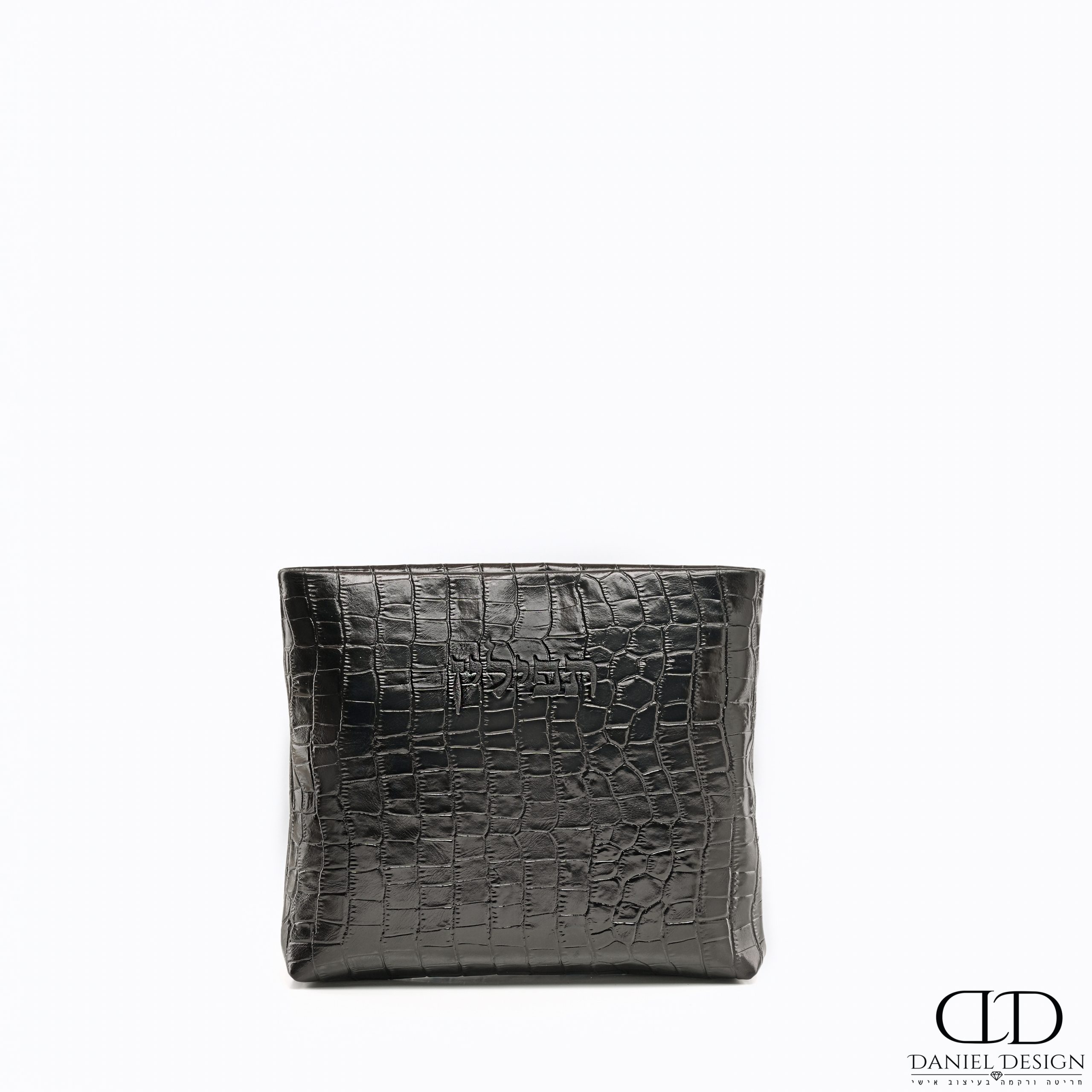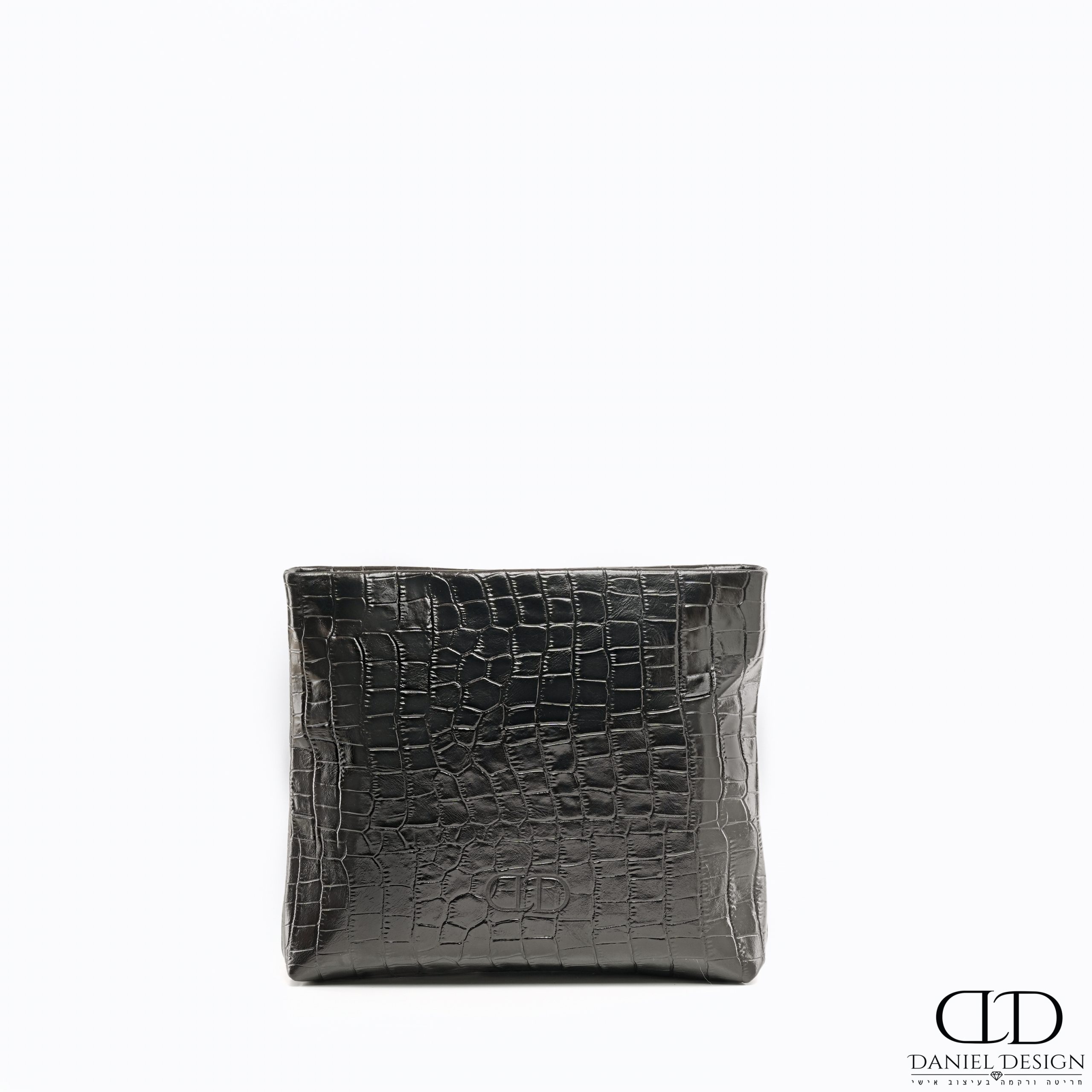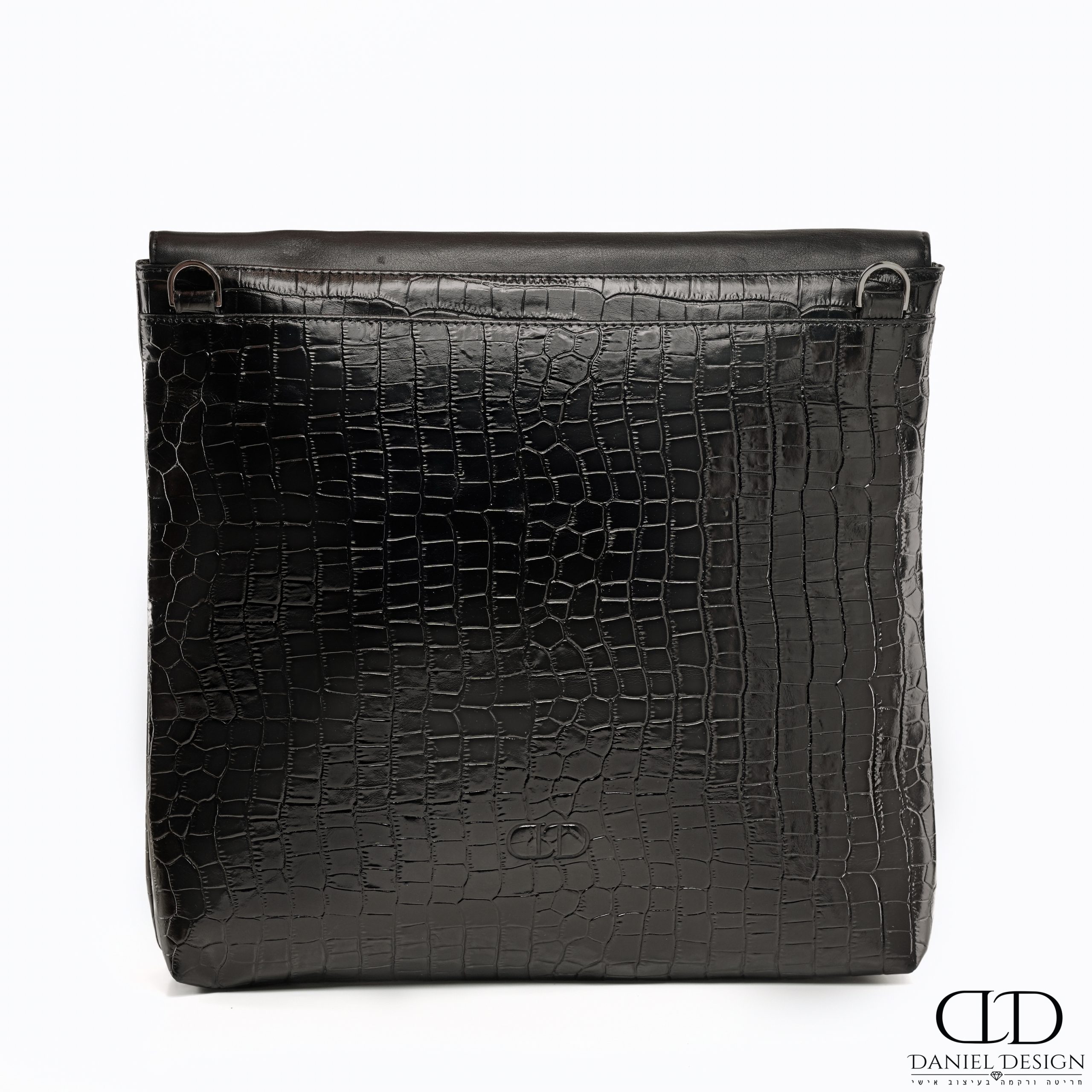 סט תיקים DANIEL עור אמיתי דגם קלאפה עור שחור קרוקו משולב חלק שחור