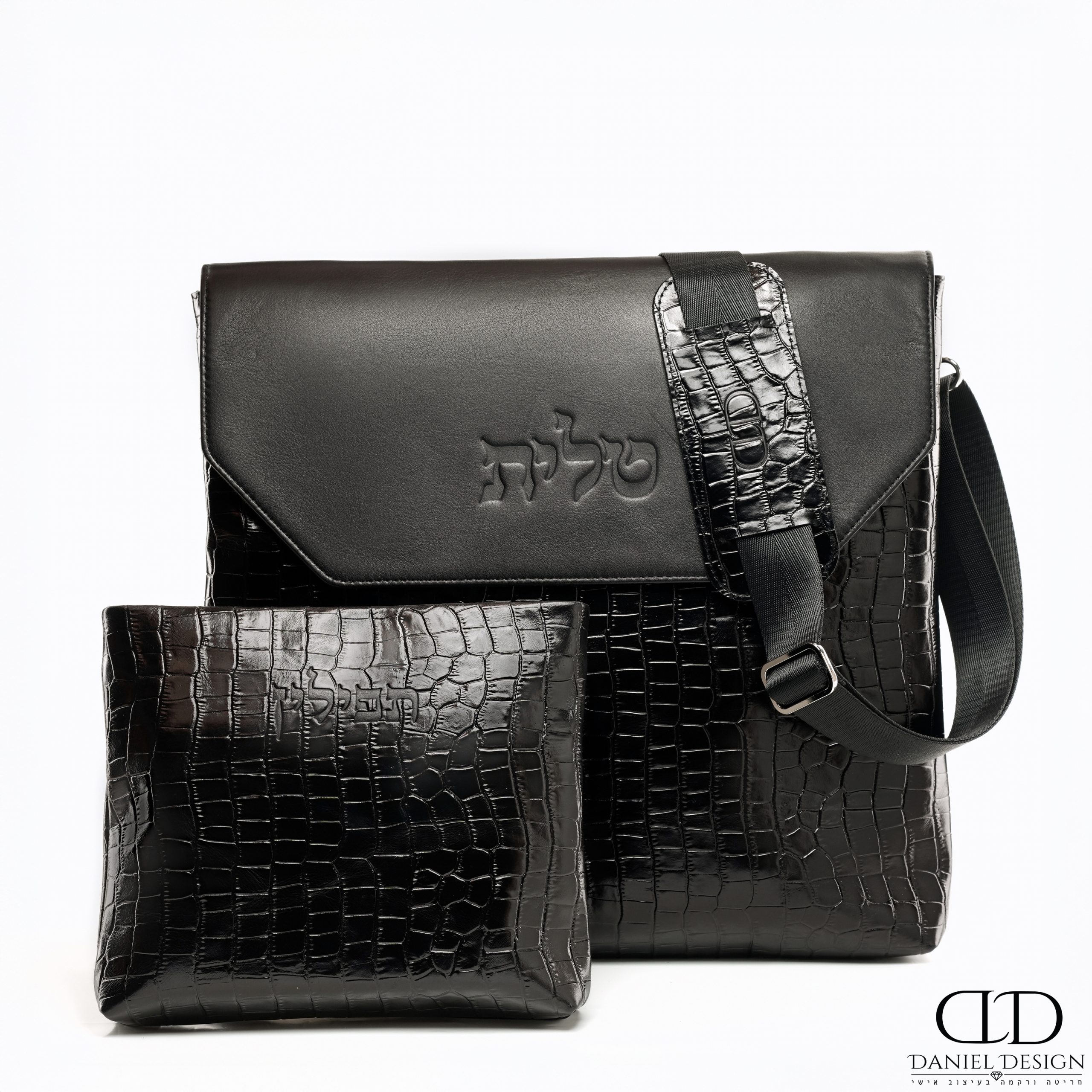 סט תיקים לטלית ותפילין תואם מעור אמיתי כולל רצועת כתף הניתנת להסרה
